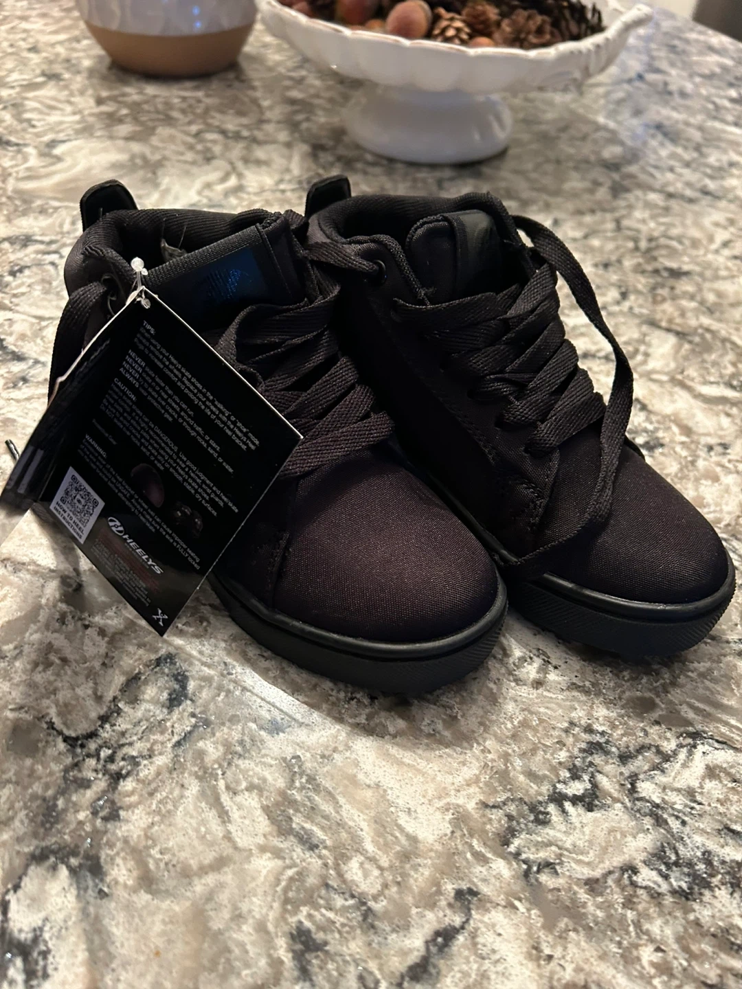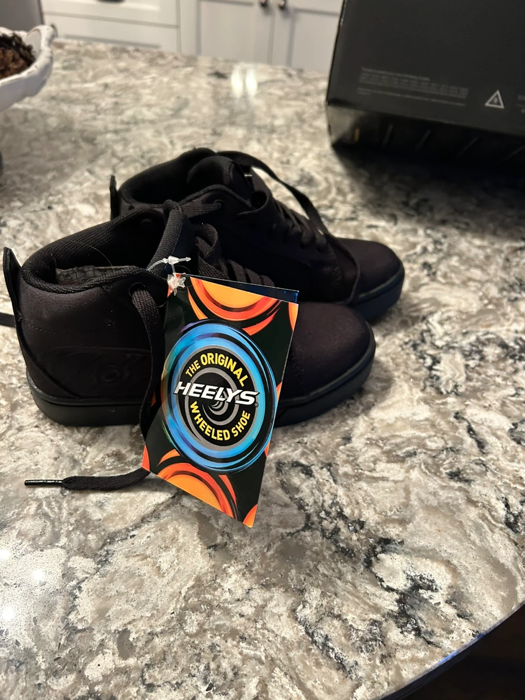10Selling a pair of Heelys wheeled shoes in black, size 2. They come with the original box and instructions. Perfect for some fun rolling around!