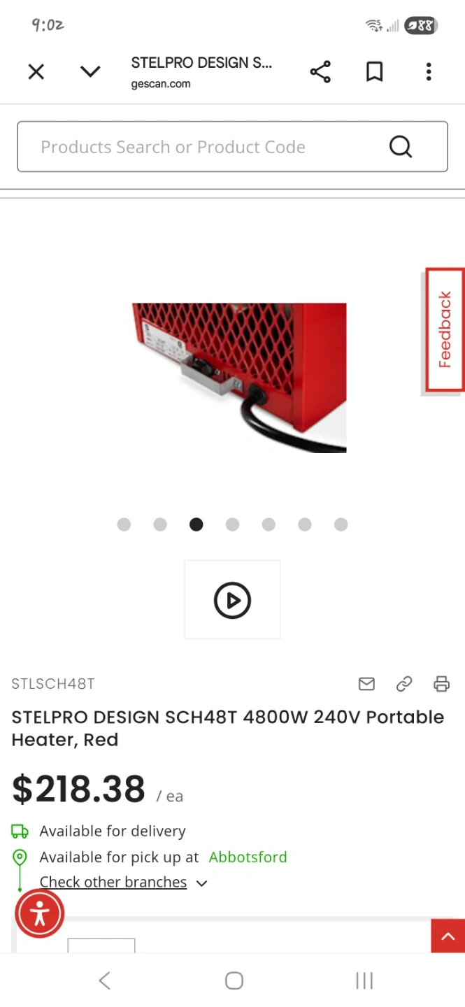 STELPRO DESIGN SCH48T 4800W 240V Portable Heater in red. This unit is designed for efficient heating. It's suitable for spaces requiring supplemental warmth. I have more than 6.of them