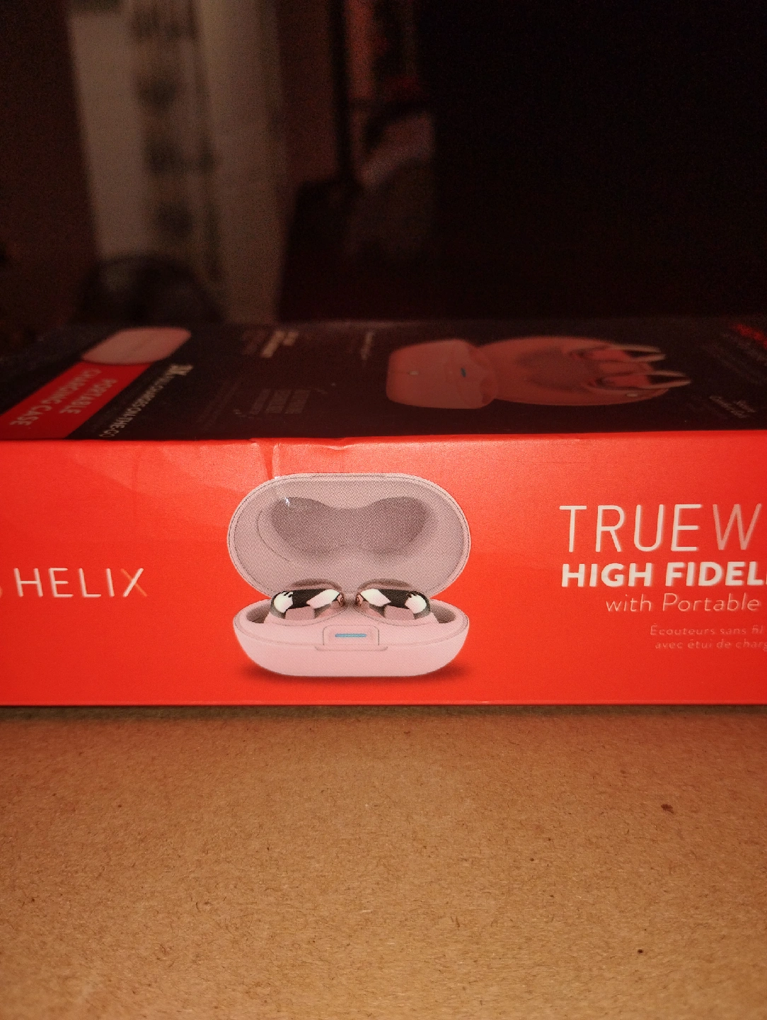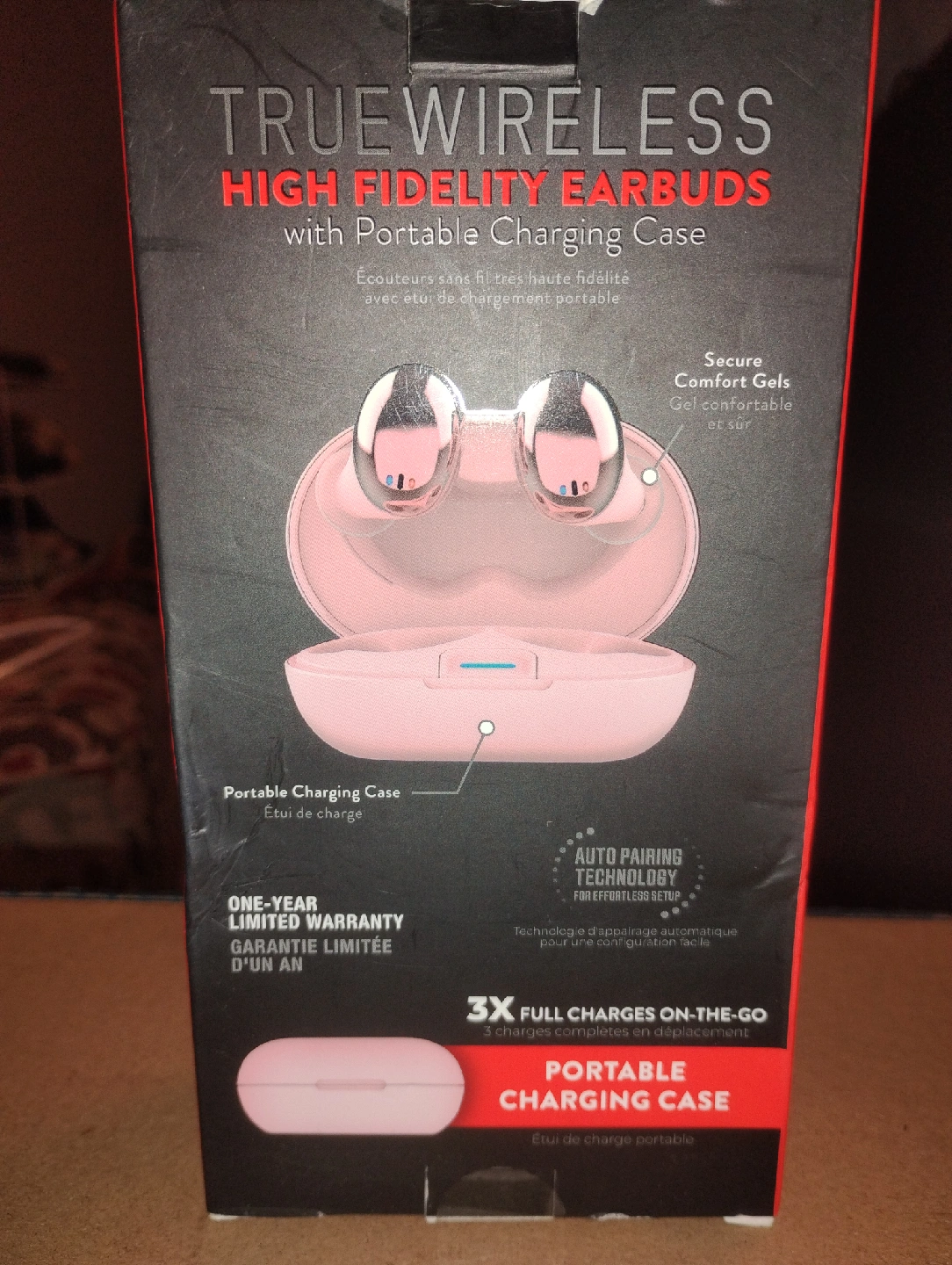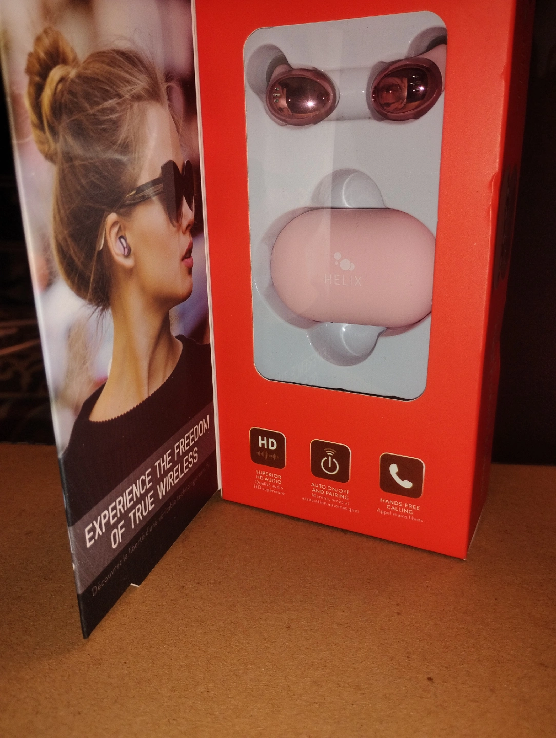 Selling a pair of Helix True Wireless High Fidelity Earbuds in pink! They come with a portable charging case, so you can get 3x full charges on the go. The box is included. Experience the freedom of true wireless with these earbuds!