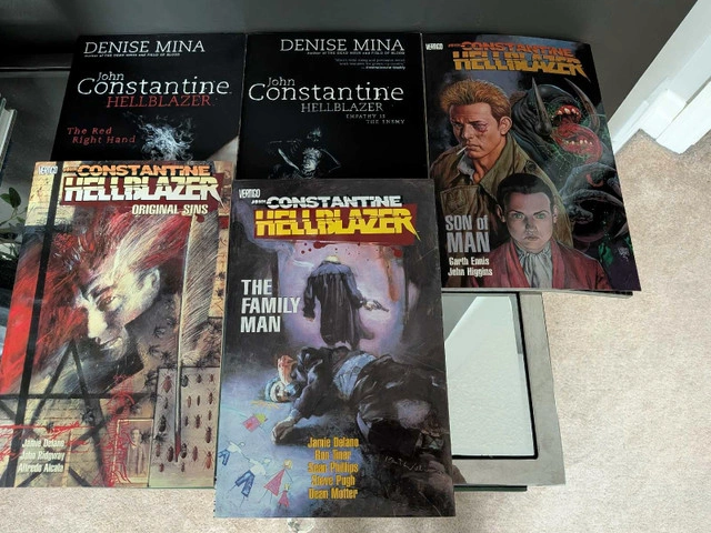 Collection of Hellblazer graphic novels, including The Red Right Hand, Empathy is the Enemy, Son of Man, The Family Man, and Original Sins. These books are in good used condition. Asking $60 for the set.