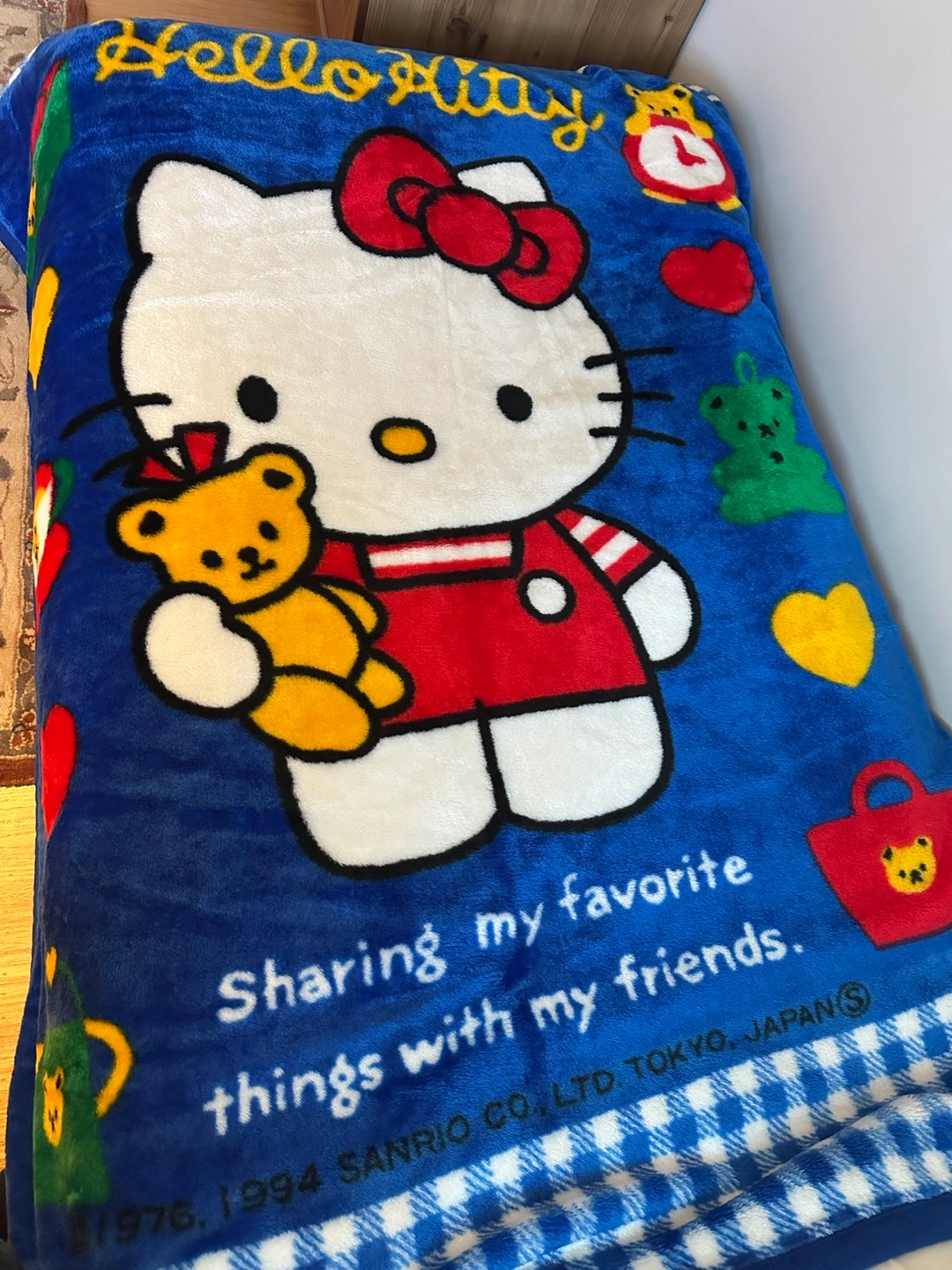 Snuggle up with this adorable Hello Kitty blanket! It's super soft and features Hello Kitty with her teddy bear. Great for kids or anyone who loves Hello Kitty! Located in east Vancouver