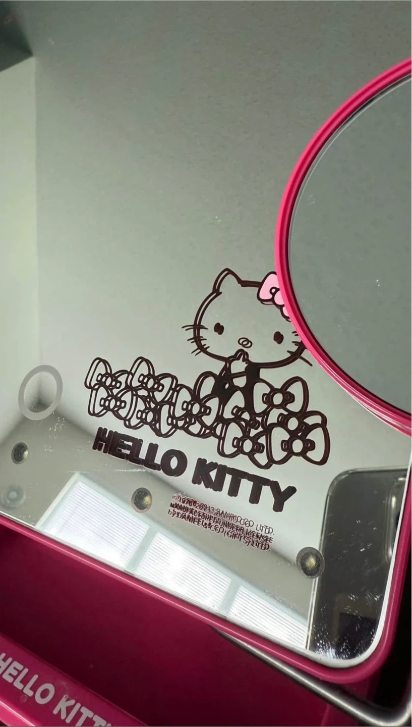 10Hello Kitty lighted vanity mirror in great condition! It features a bright LED light around the mirror and a smaller, detachable magnifying mirror. Perfect for your makeup routine or adding a touch of cuteness to your vanity