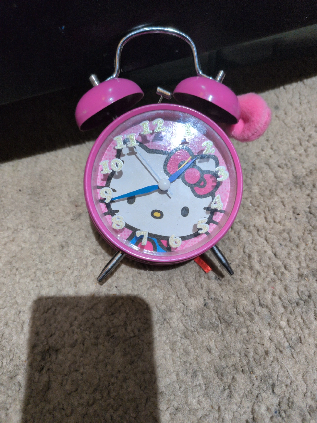 23Super cute Hello Kitty alarm clock! It's pink with a Hello Kitty face on the clock. A fun addition to any Hello Kitty fan's collection