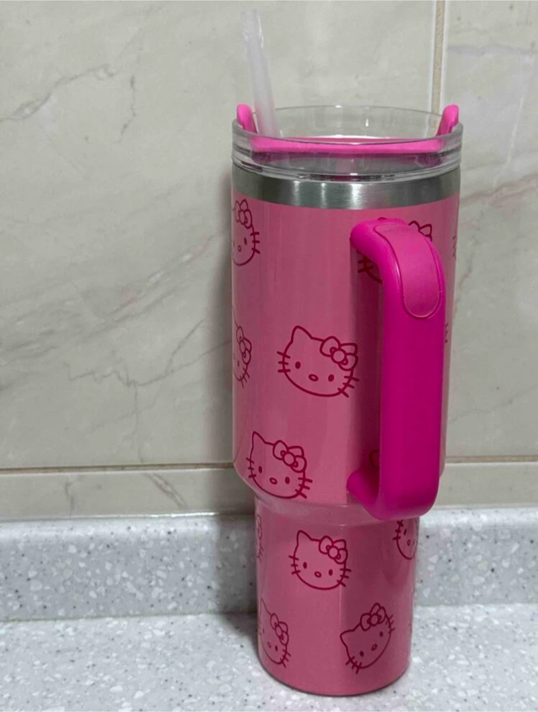 42ONLY SHIPPING FOR THIS!!! Super cute Hello Kitty tumbler in pink! It has a handle and is perfect for keeping your drinks cold or hot. Great for any Hello Kitty fan
