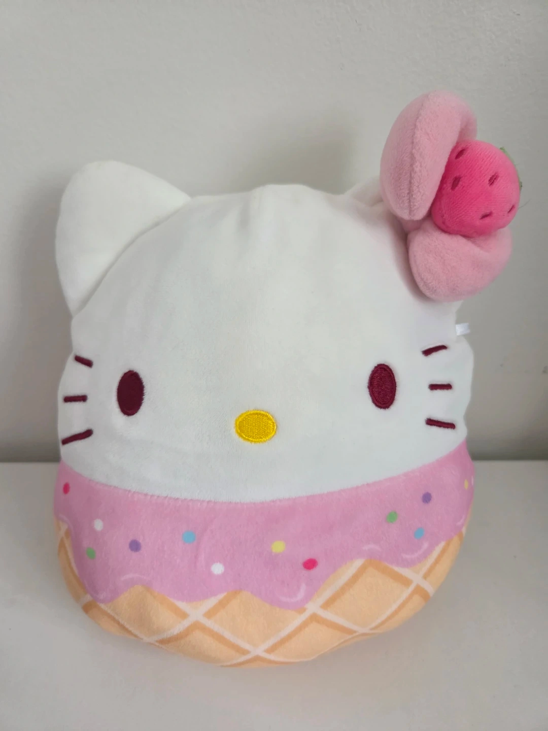 15Super cute Hello Kitty Squishmallow dressed as an ice cream cone! This plush is in great condition and ready for a new home. It's soft, cuddly, and perfect for Hello Kitty fans of all ages
