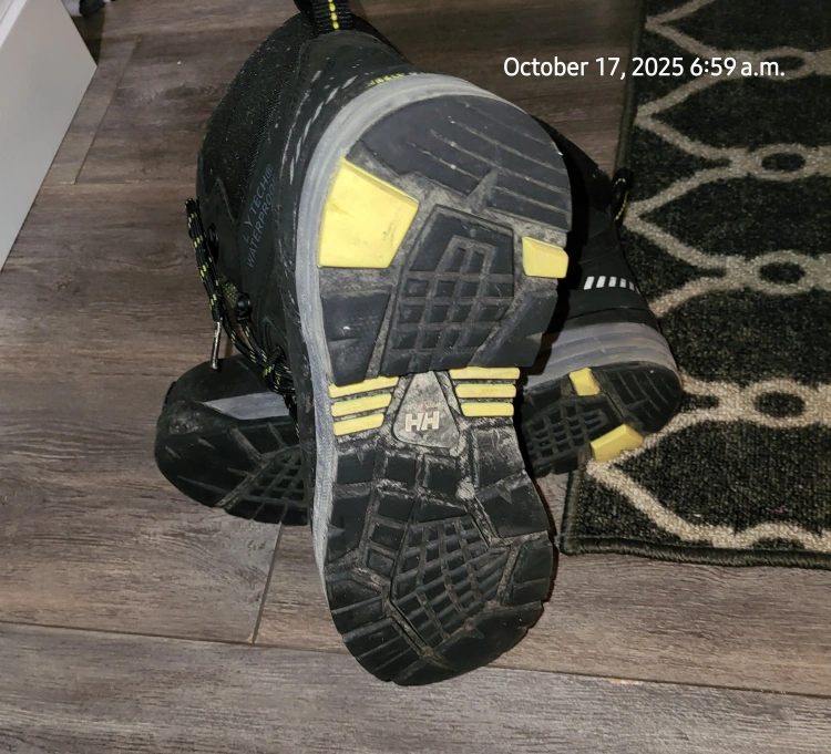 Selling a pair of Helly Hansen T-Max work boots in women's size 10. They're in used condition, perfect for work or outdoor activities!