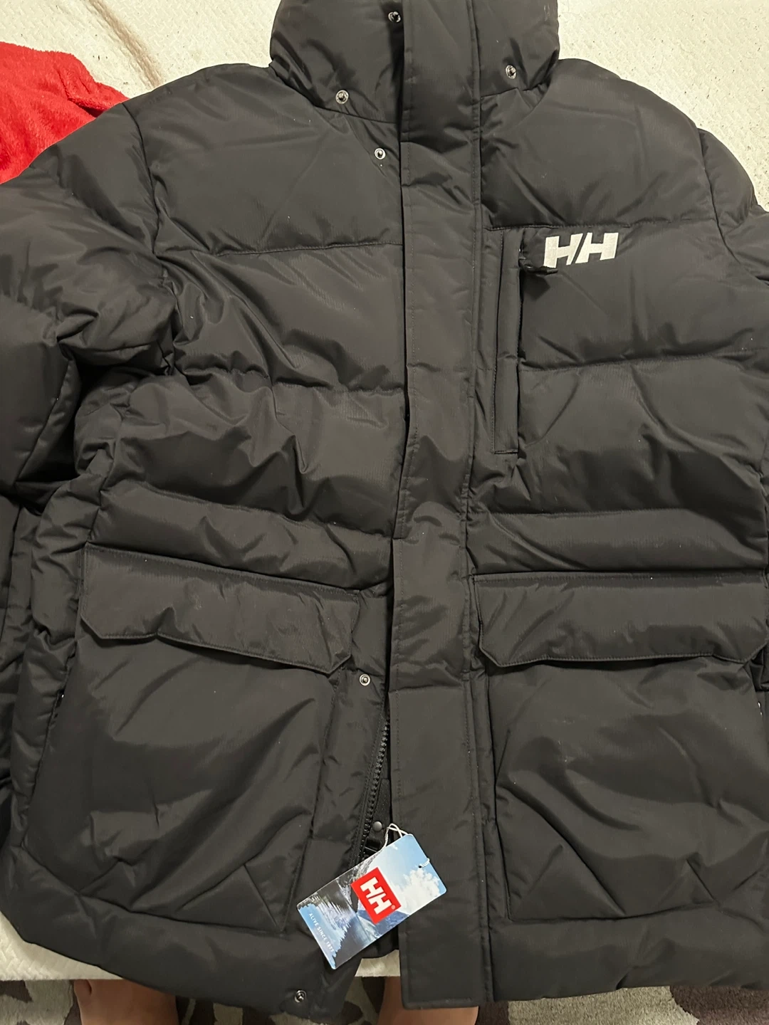 0Selling a Helly Hansen vardo parka jacket in brand new condition! , It still has the tag on it I have never used it . Bought it for my brother for $400 couple of months ago as a gift but it was a bit bigger and by mistake i passed the return policy time line so don’t have any other option and thus selling it for this cheap.It's a size L and perfect for staying warm during the colder months. The jacket features a classic design with plenty of pockets for storage. It's a stylish and practical choice for everyday wear