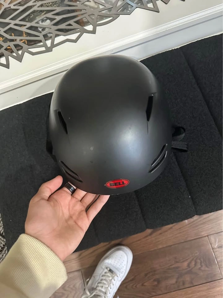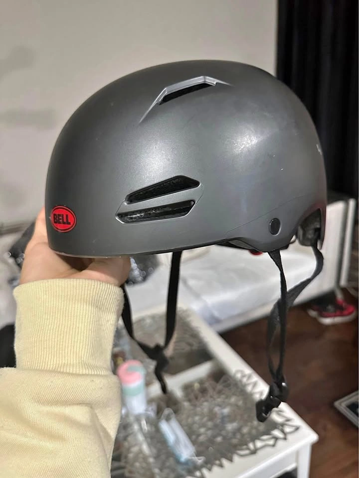 15Has some scratches but barely can see it. Adjustable helmet. Can fit any size. The brand is bell.