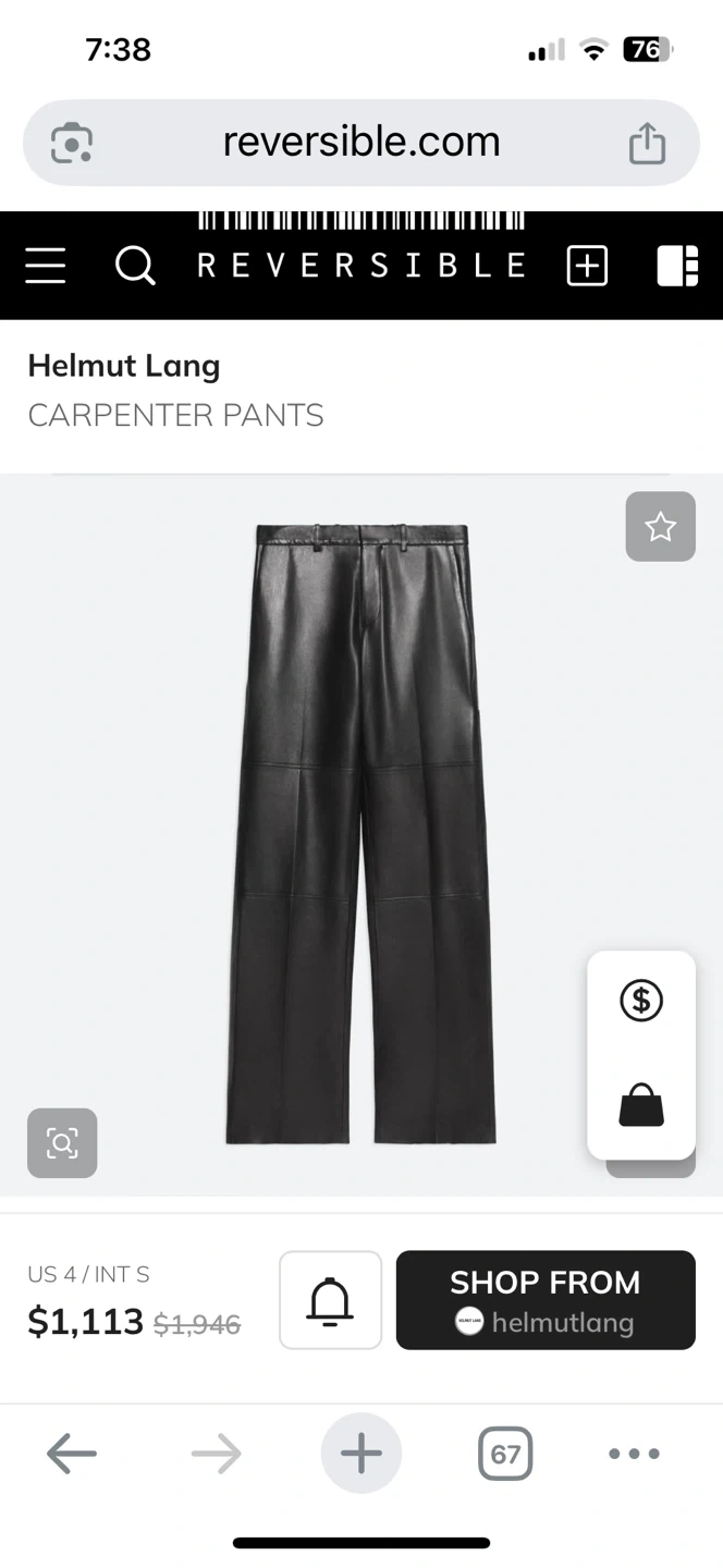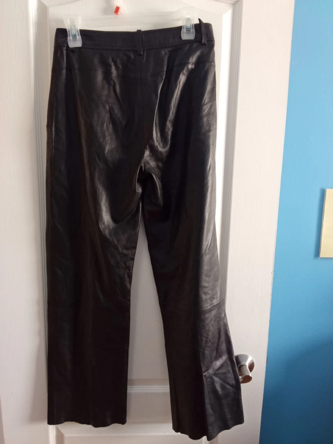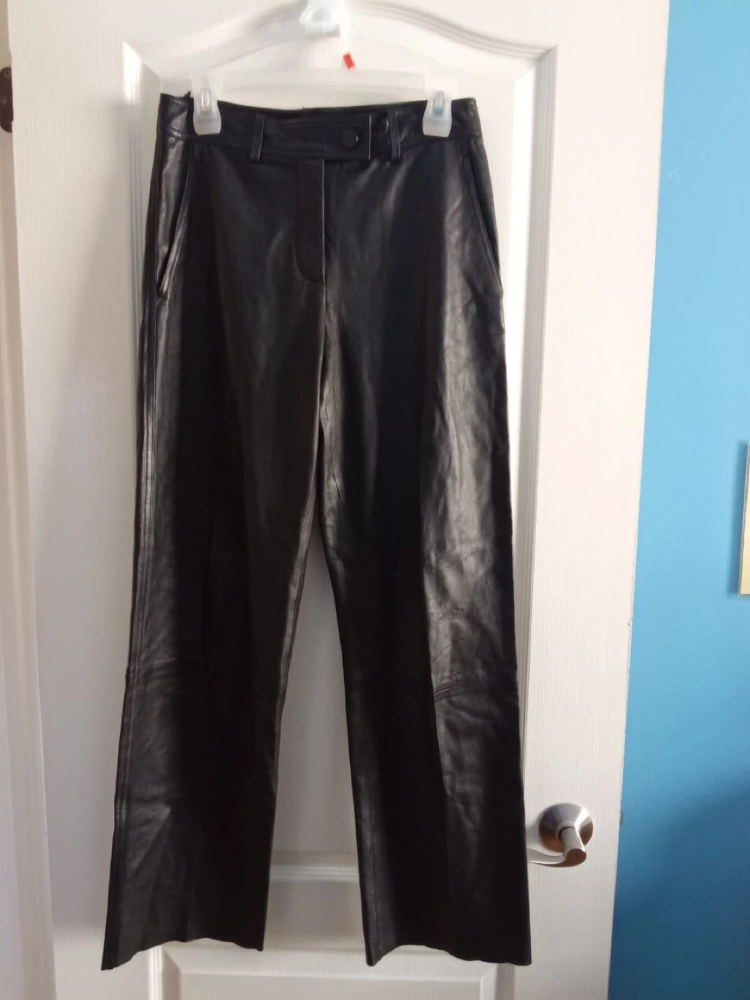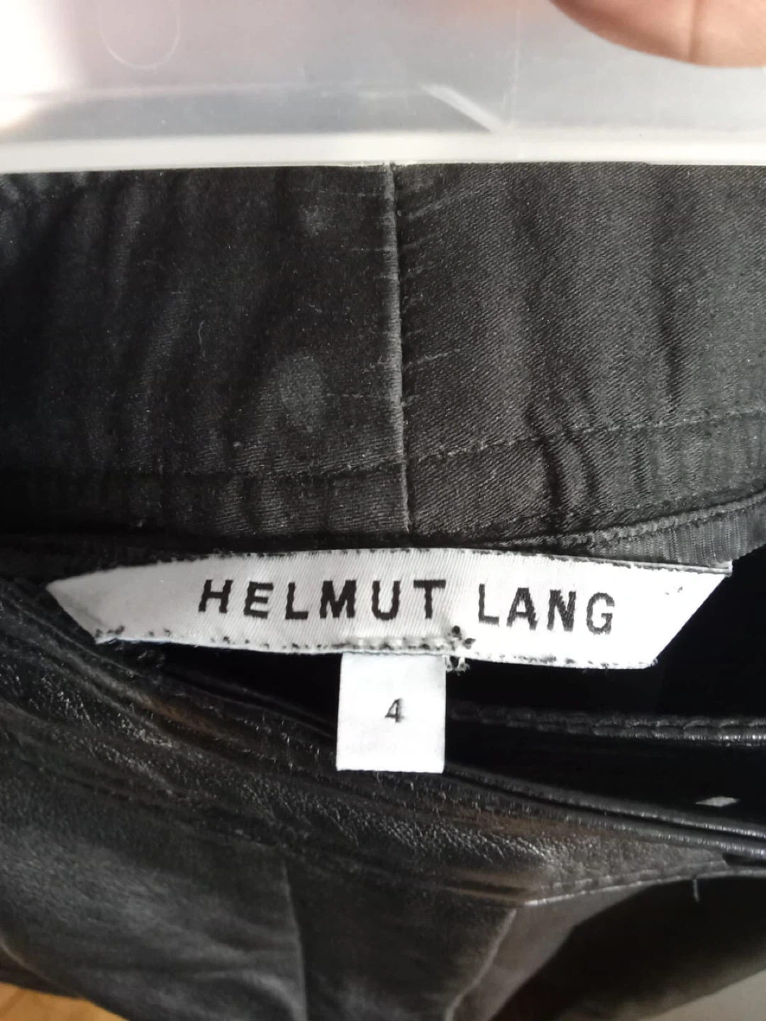 10Selling a pair of Helmut Lang leather carpenter pants in size 4. These pants are in great condition and feature a stylish, wide-leg design. Perfect for adding a touch of edgy sophistication to your wardrobe!