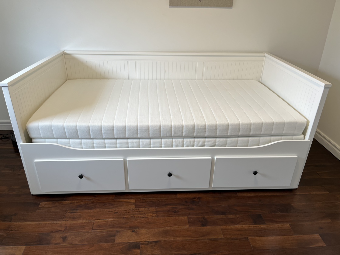 18IKEA Hemnes daybed with 2 mattresses and 3 drawers retails for $699. Used sparingly, the bed frame and mattresses are in excellent condition. Good space saving daybed for a great price!