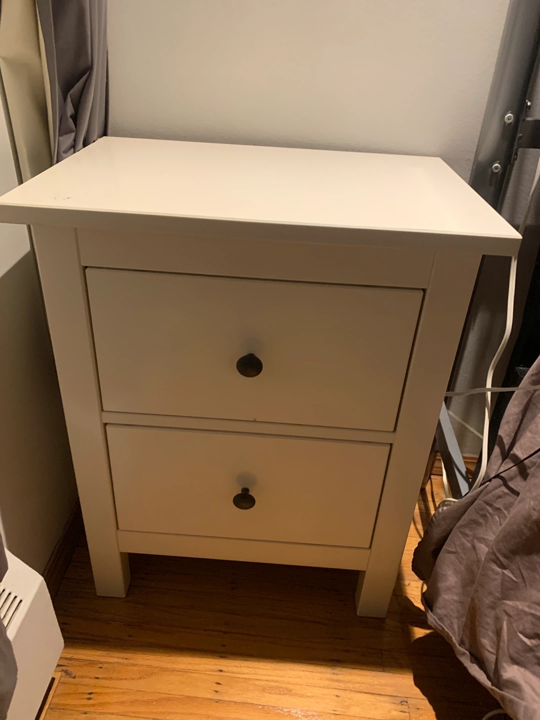 74Selling a cute white nightstand with two drawers! It's in great condition and would look lovely in any bedroom. Perfect for storing your books, phone, and other bedside essentials