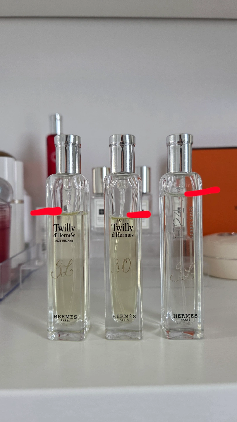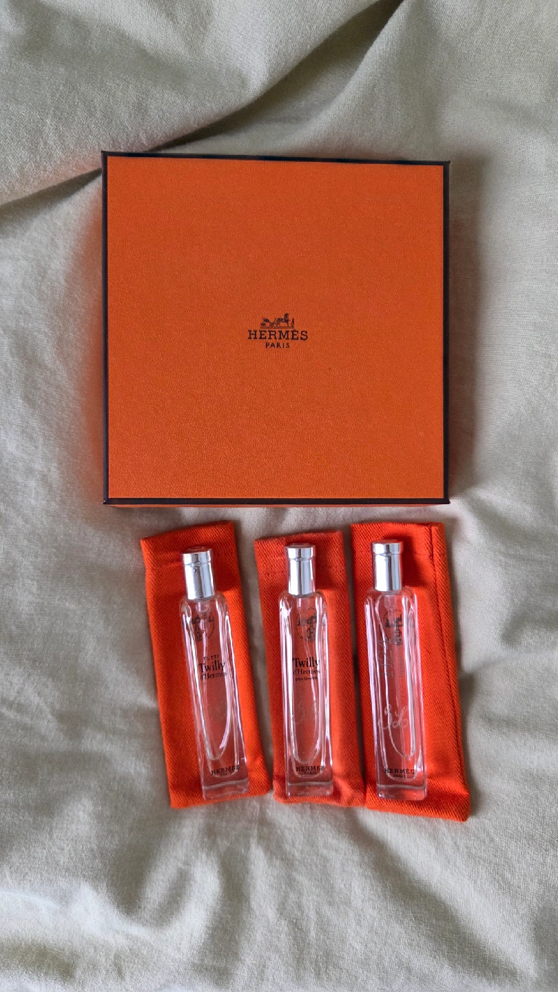 416Selling a set of three Hermès perfumes! They come in the original box and are perfect for travel or trying out the scent. 1. Tutti Twilly d' Hermes 2. Twilly d'Hermes eau ginger 3. H24 herbes vives (almost new)