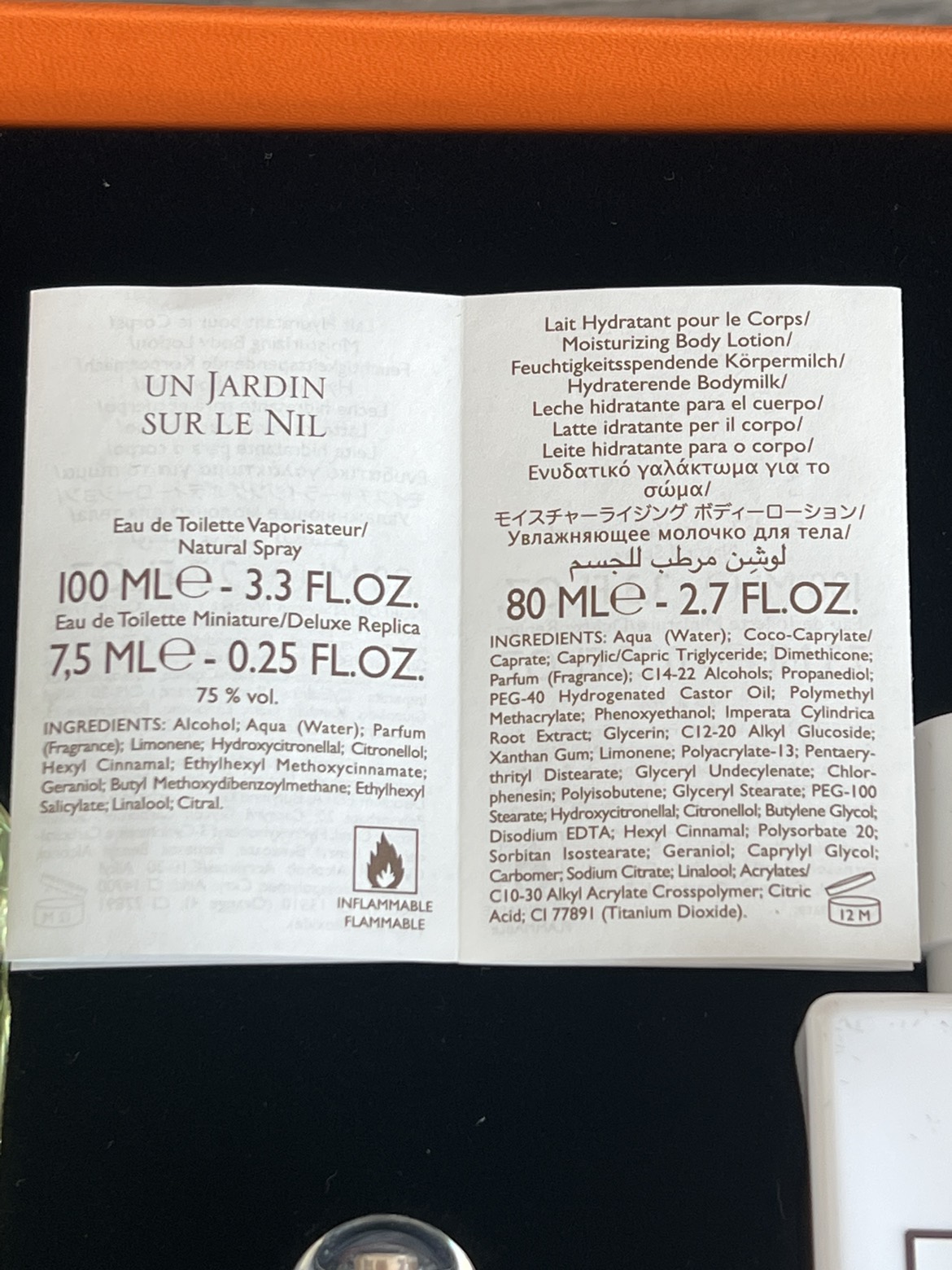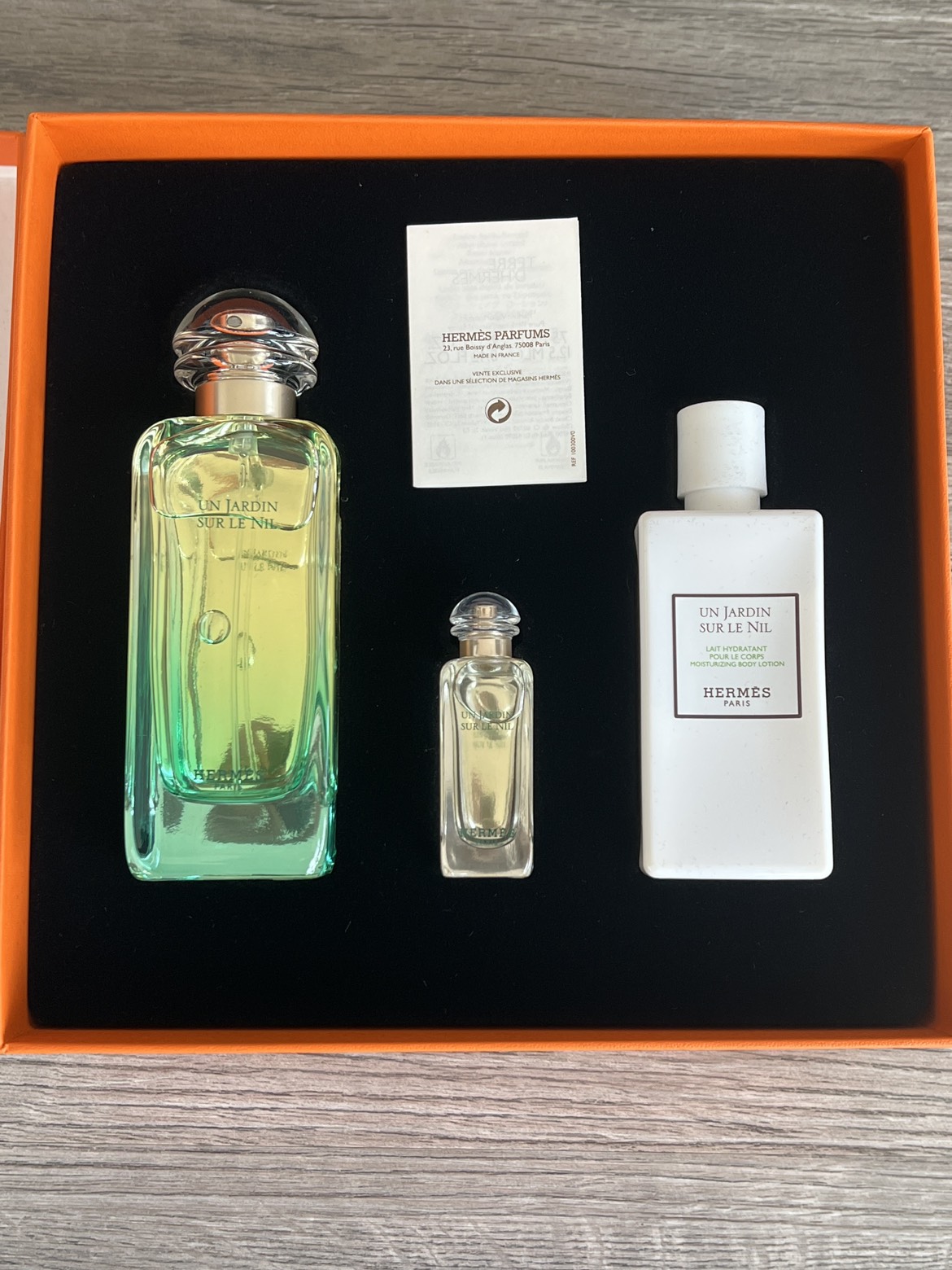 1000+Hermes fragrance Un Jardin sur Le nil 100 ML bottle of eau de toilette 7.5ml travel bottle 80 ml of body lotion