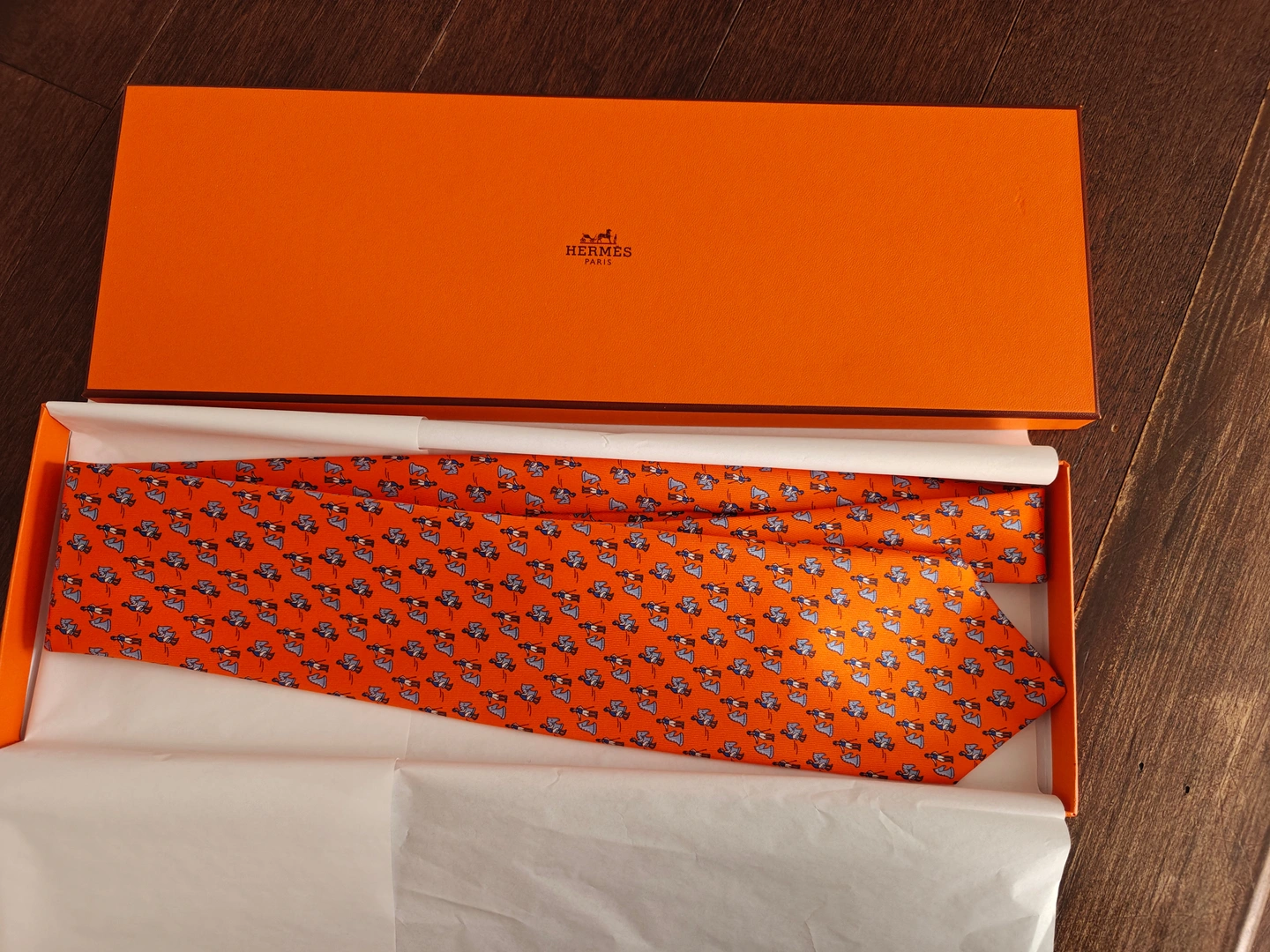 Hermes Silk Tie New in Box Never used Retail $325 + Taxes