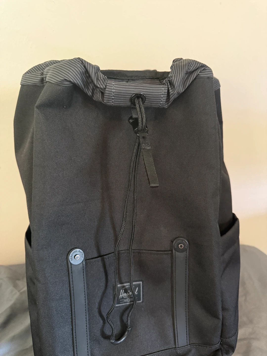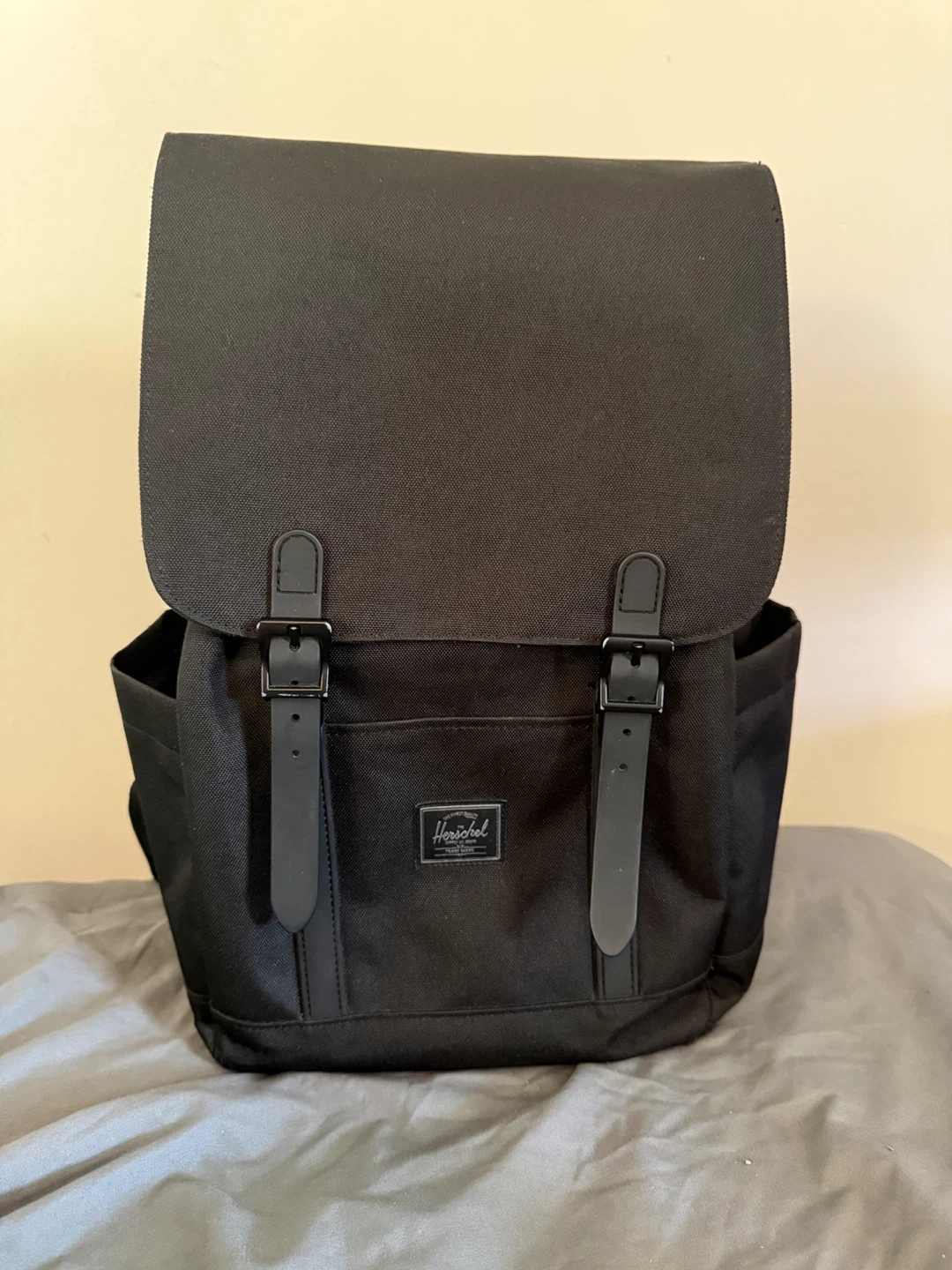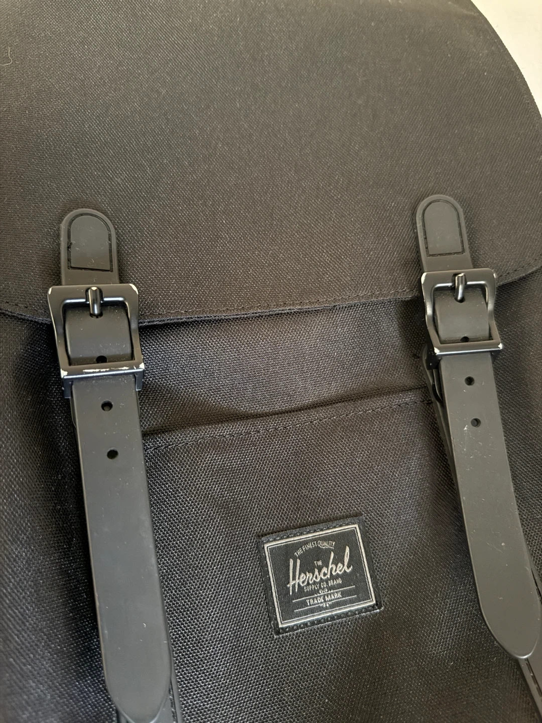 Herschel Retreat™ Small Backpack 17L - Black Tonal Selling a Herschel Supply Co. backpack in black. Perfect for school, work, or travel. Can fit 13/14” laptop. Padded straps. Discoloration in buckles as shown in the picture. Used for work for a month then put into a storage as I find it too big for me.