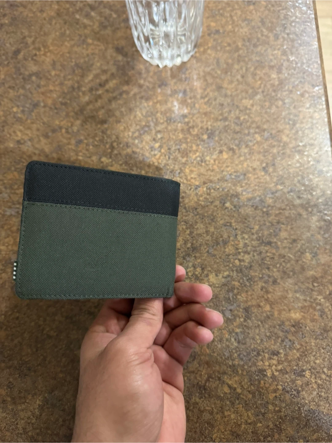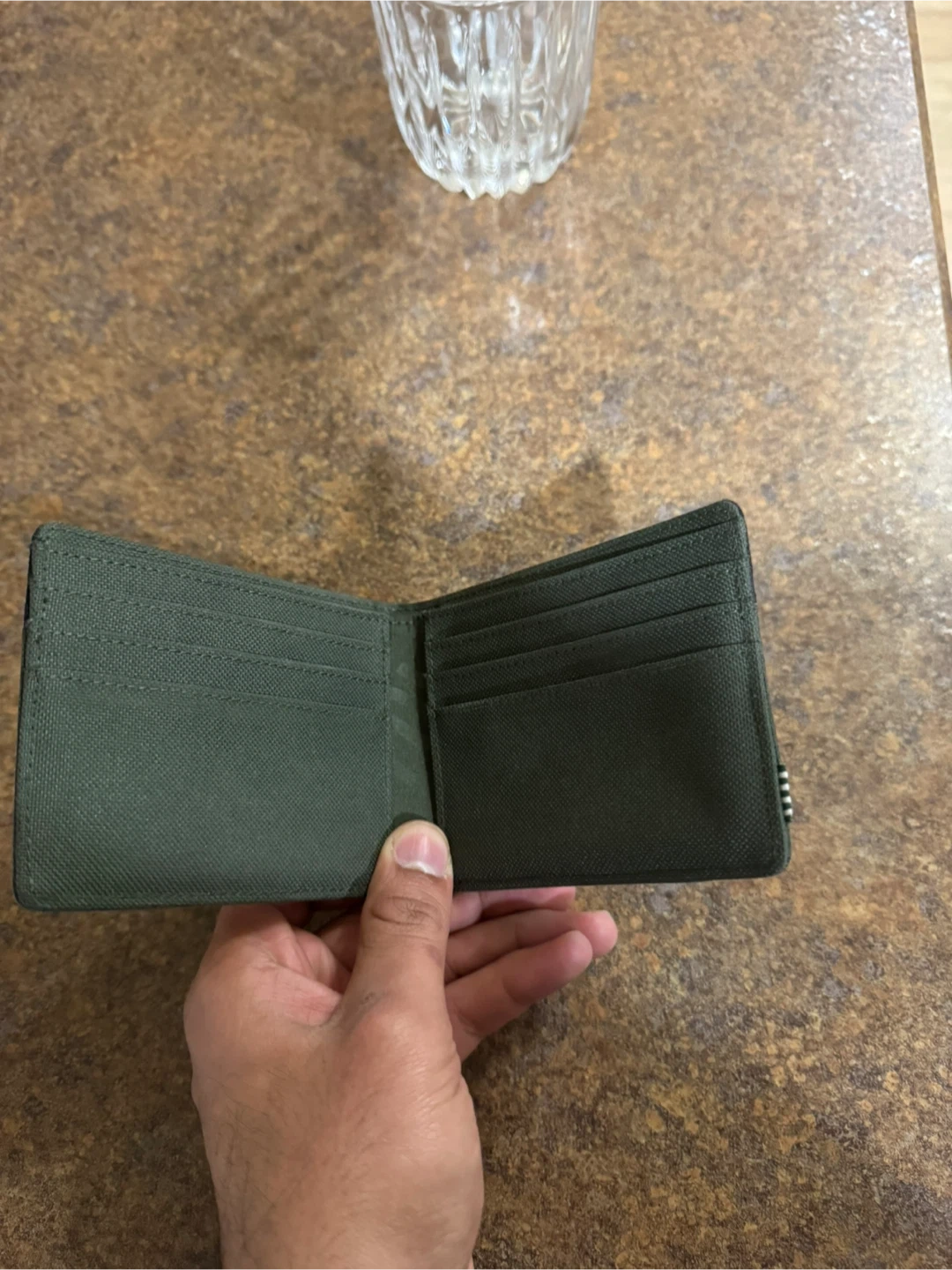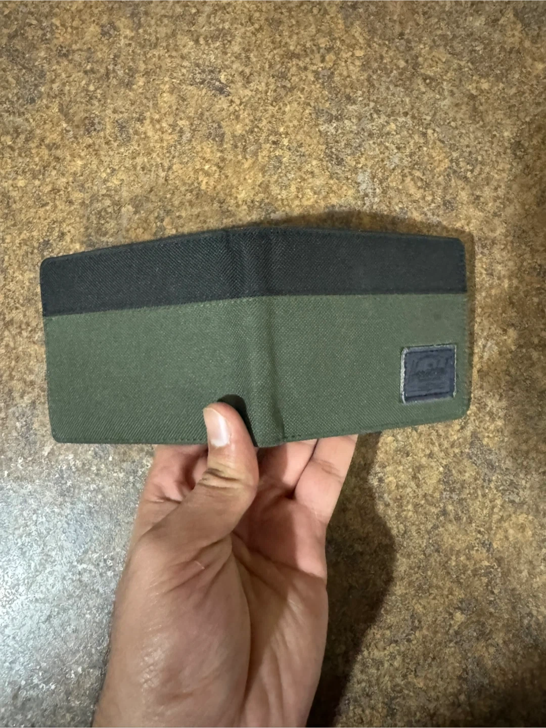 34Here's a Herschel wallet in olive green!. It has a classic bifold design with plenty of slots for your cards and cash. Perfect for everyday use!