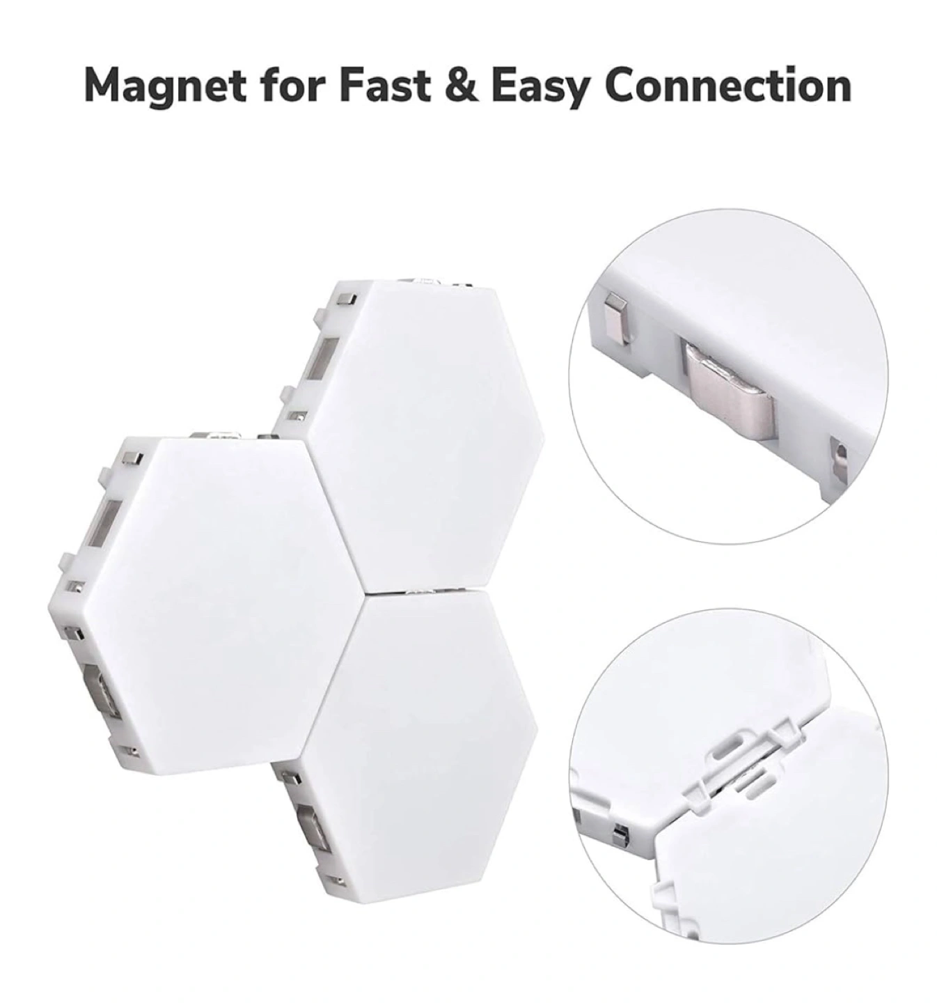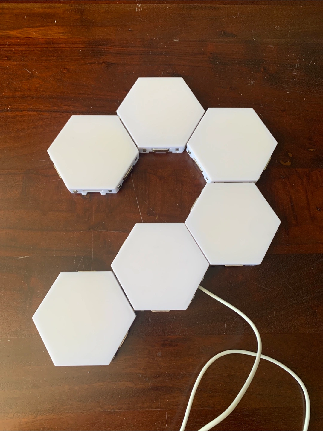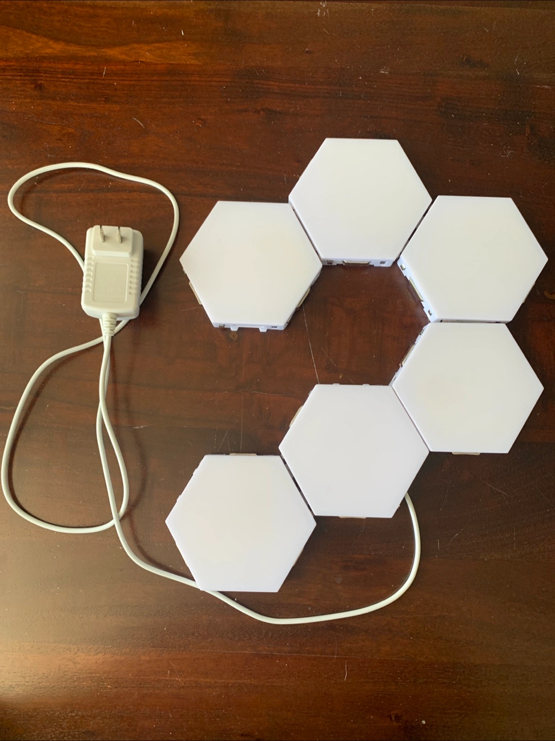 Selling a set of 6 hexagon LED touch lights! These are modular LED panels that connect together magnetically for easy set up. They're in perfect condition. Must pick up and cash only.