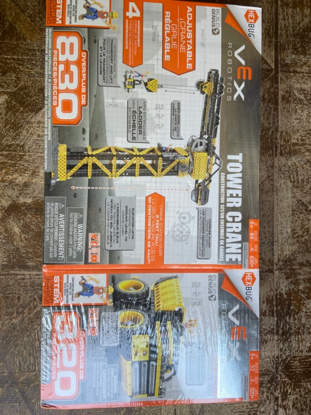 Selling a Hexbug VEX Robotics set that includes both the Tower Crane and Dump Truck! This set is perfect for builders aged 8+. The Tower Crane set has over 830 pieces, and the Dump Truck has over 320 pieces for hours of building fun!