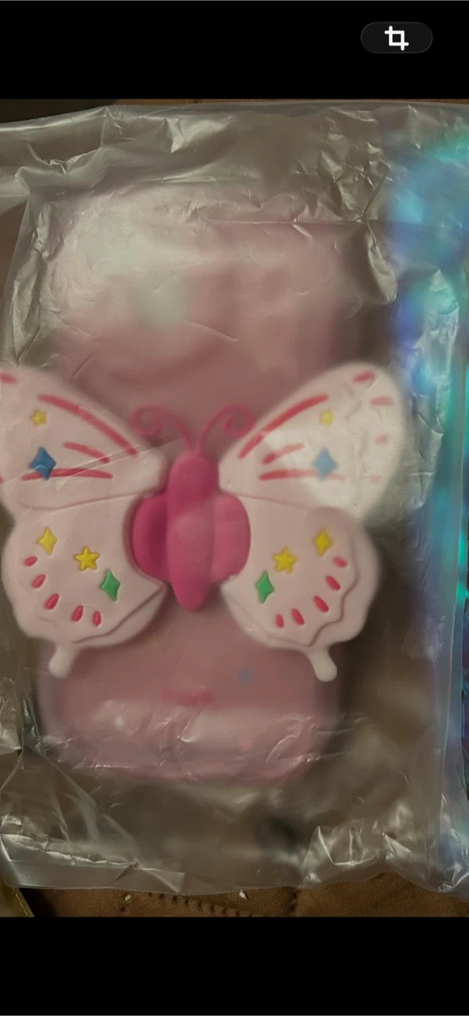 Iridescent phone case featuring Hello Kitty. It's a cute and eye-catching accessory for your phone. Includes a pink butterfly embellishment on the back. 20$ each