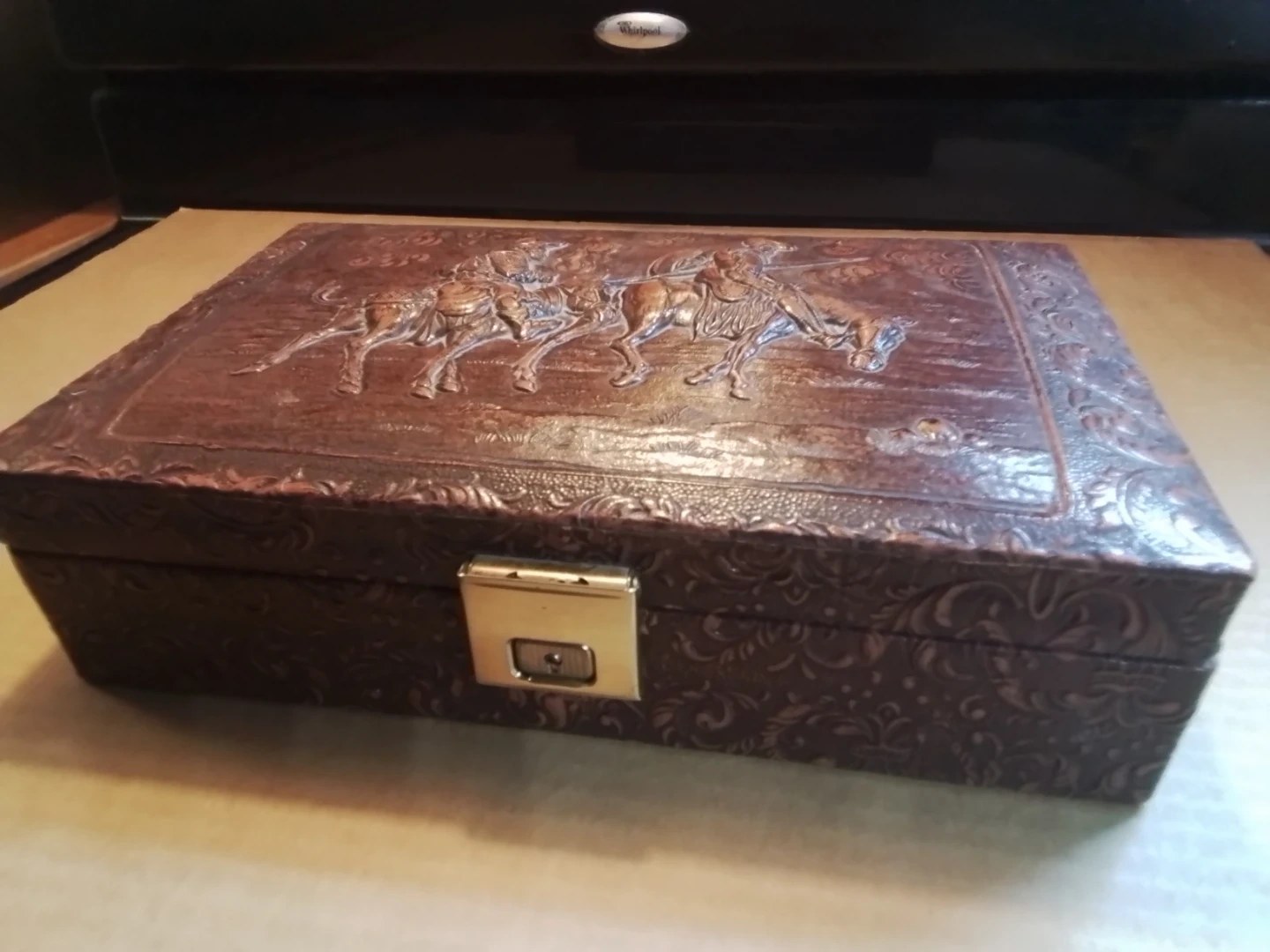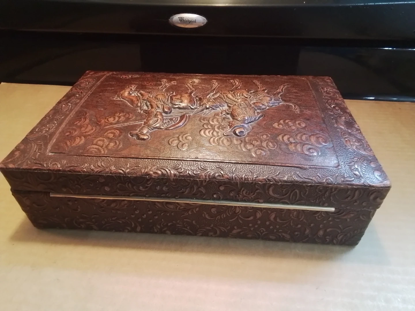 Vintage Embossed Leather Western Scene Trinket Box