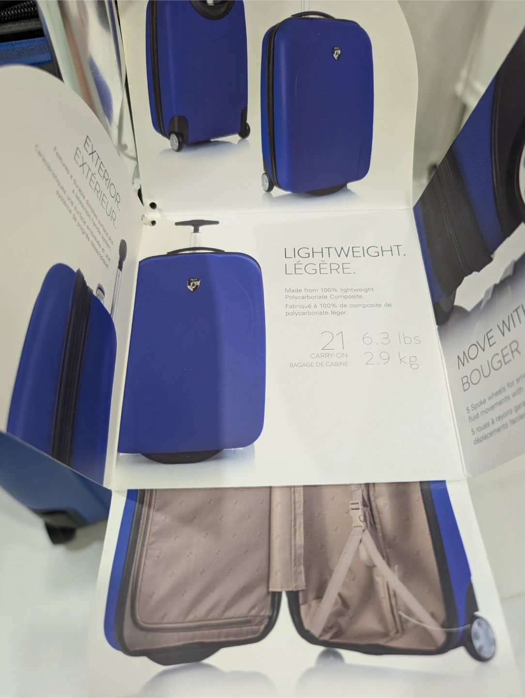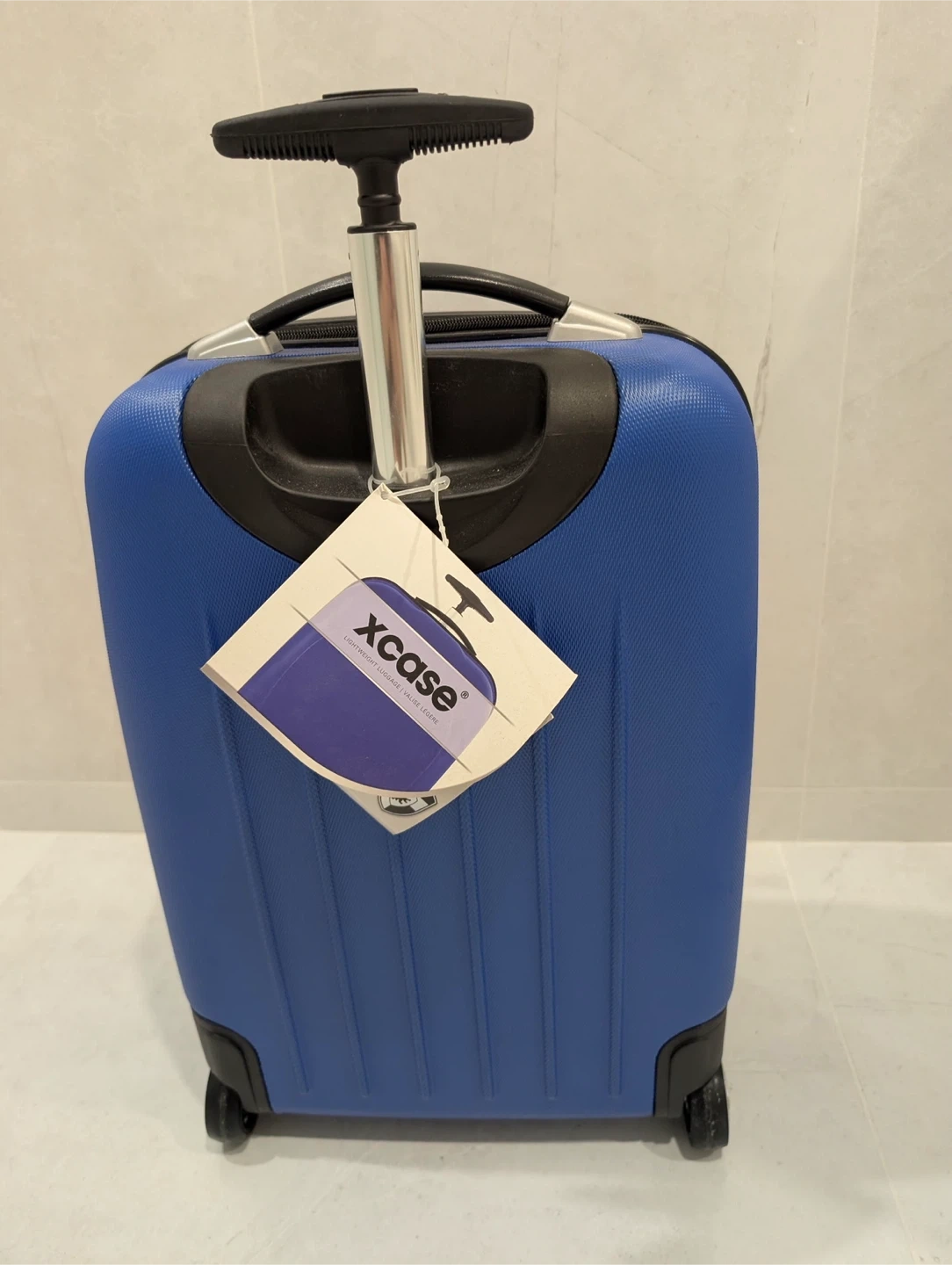 Selling a blue Heys Xcase carry-on luggage. It's lightweight, made from 100% polycarbonate composite. The luggage is 21 inches and weighs about 6.3 lbs (2.9 kg). Perfect for your next trip!