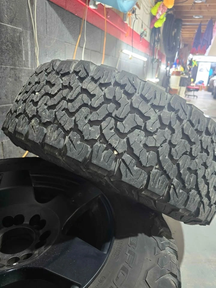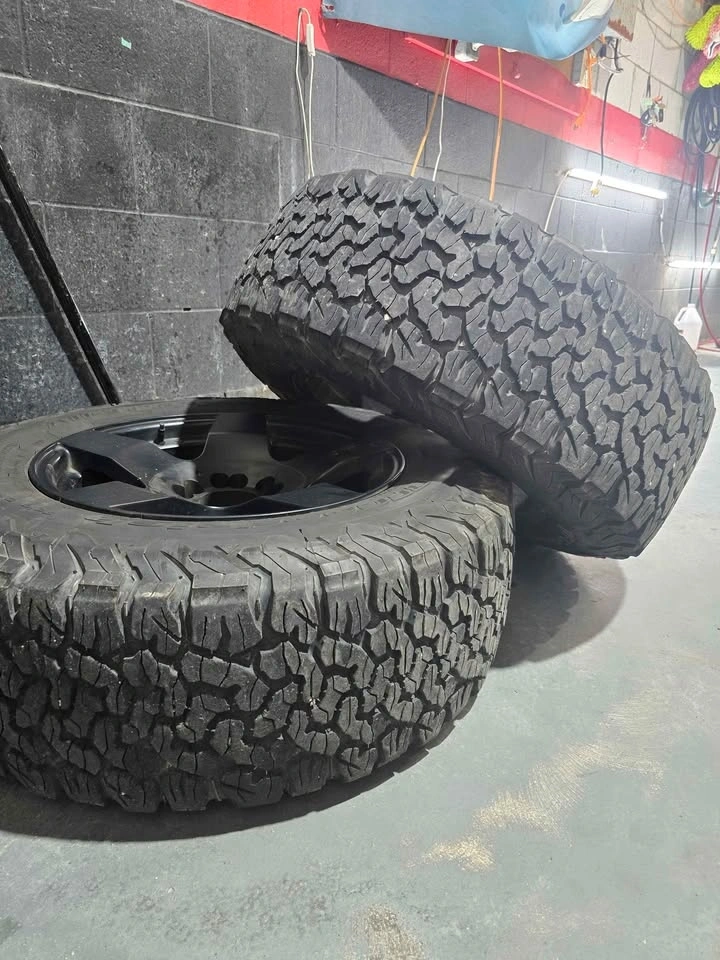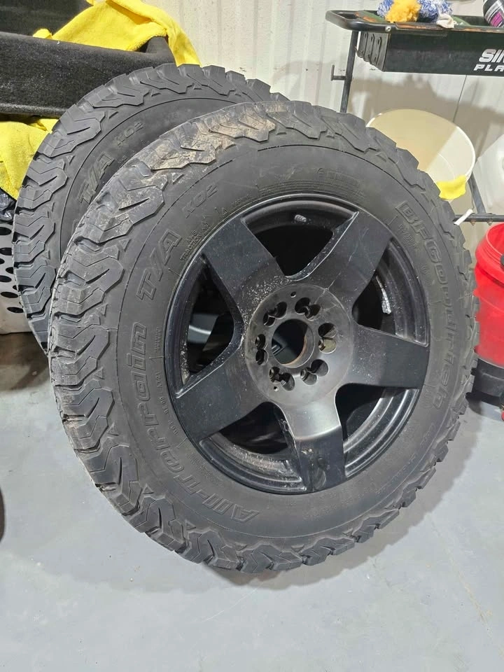 18” wheels with BFGoodrich KO2 tires. Tires are from 2021 with lots of tread left. Wheels are in great shape, though one has minor curb rash. These came off a 2013 Ford F150. Asking $1,200 OBO.