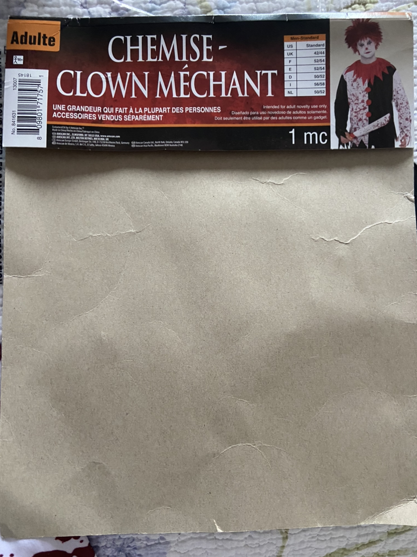 1 / 71 / 7Buy & SellAdult Evil Clown Long Sleeve Shirt CostumeAdult Evil Clown Long Sleeve Shirt Costume$15Adult Evil Clown Long Sleeve Shirt Men’s standard size. One sz Mask includedConditionLike newSizeOne sizeWHERE TO MEET7-ElevenView MapSELLERNancyLisgar644 reviews0 chats·0 favorites·29 viewsSEND CHAT TO SELLERHi Nancy! I’m interested in your listing.Hi Nancy! I’m interested in your listing.Get the Karrot app to chatSign In to chat