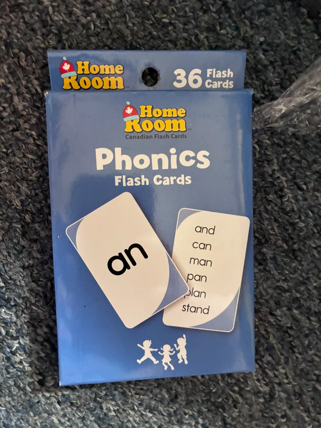 Home Room Phonics Flash Cards are Canadian-made! This set includes 36 cards for learning phonics. Cards feature common word families like 'an'.