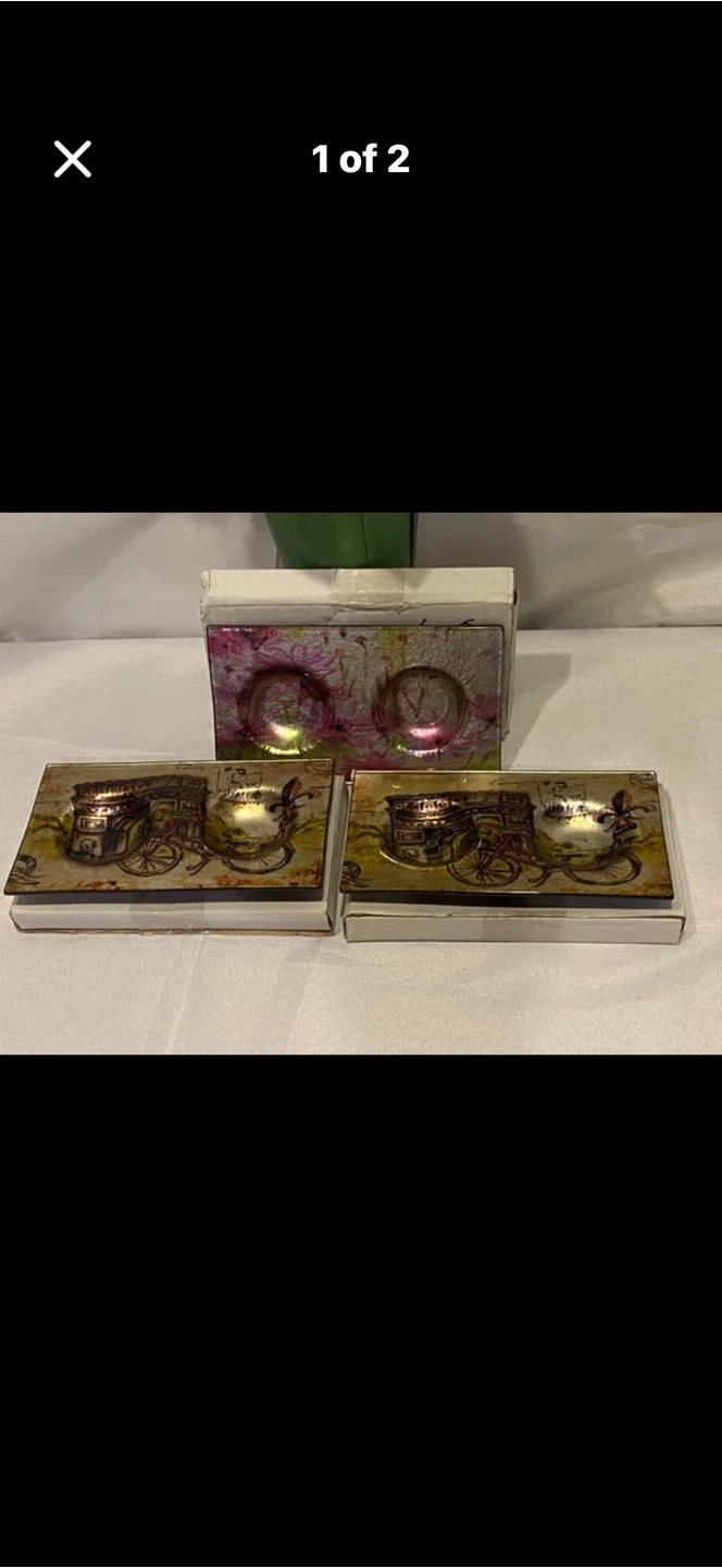 Decorative Glass Tea Light Holders Trays - Set of 3