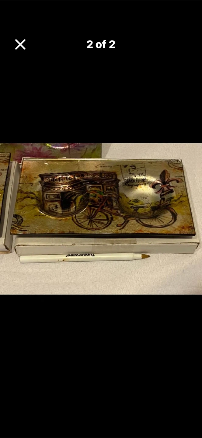 Set of three decorative trays with vintage European street scene designs. They're great for holding small items or as decorative accents.