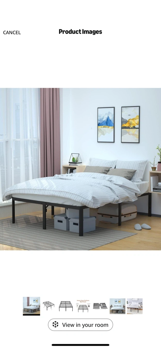 Selling a full-size metal platform bed frame. It's a sturdy and simple design, perfect for any bedroom. The dimensions are approximately 74.6 inches in length and 53.5 inches in width. It's in great condition and ready for a new home!