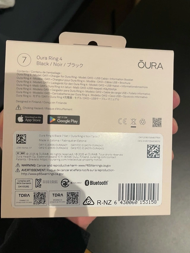 I'm selling a used Oura Ring 4 in black, size 7. This ring tracks sleep, activity, heart rate, and more, providing personalized insights to optimize your health. This particular ring is in good condition, meticulously cared for, and comes with its original box and charger. Model: Oura Ring 4, Size: 7, Colour: Black. Cash accepted.