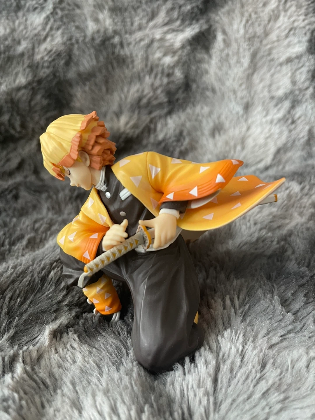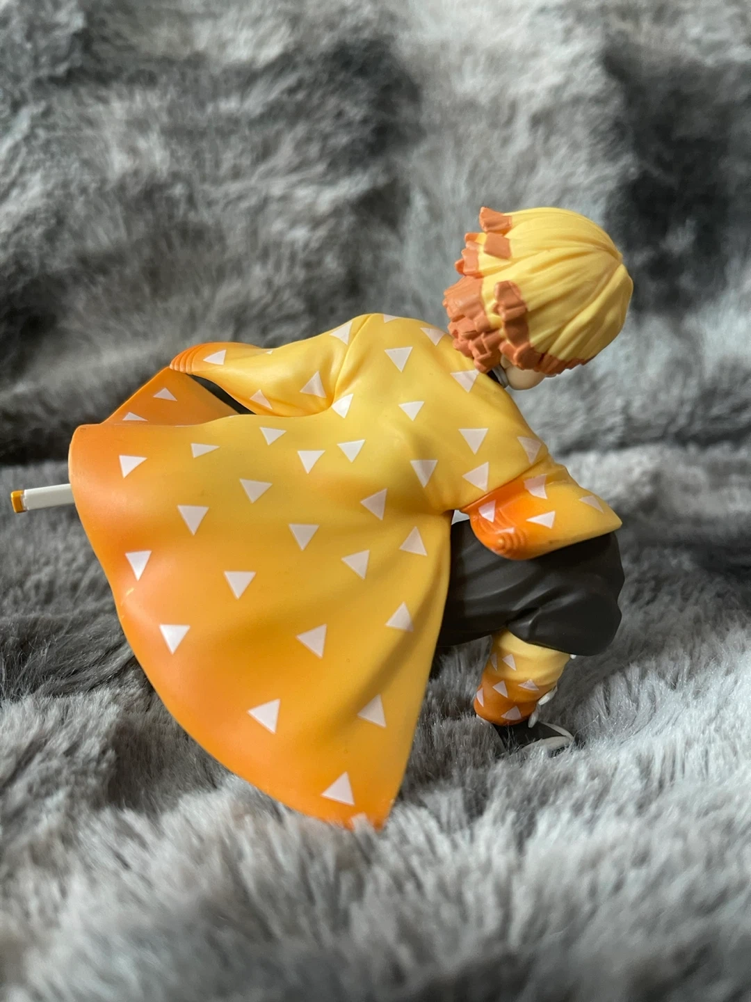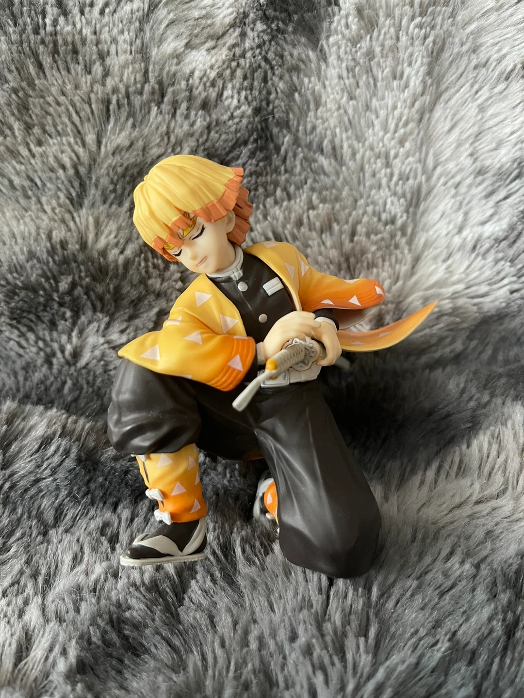 This is a Demon Slayer figure of Zenitsu Agatsuma. It's made of plastic. This collectible is great for fans of the anime series!