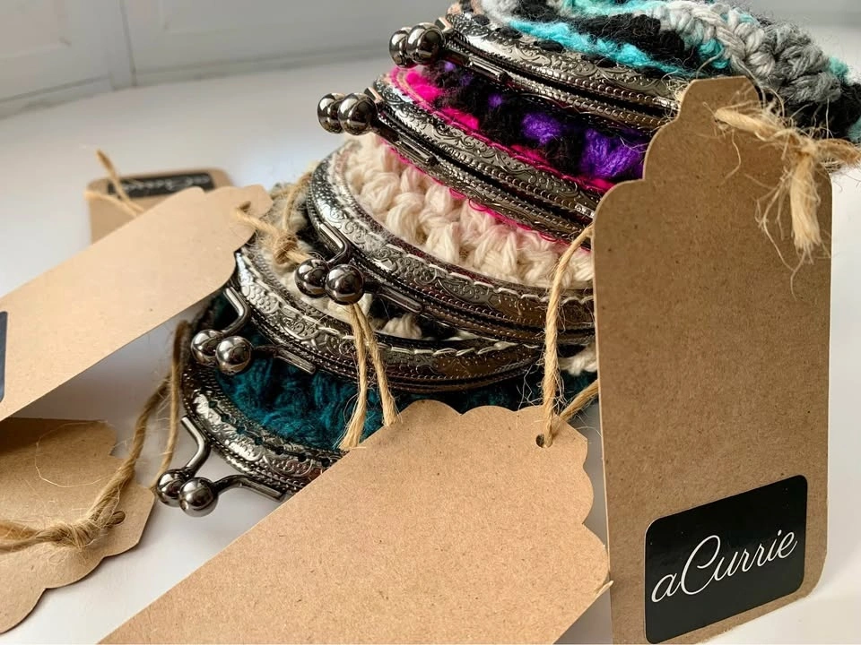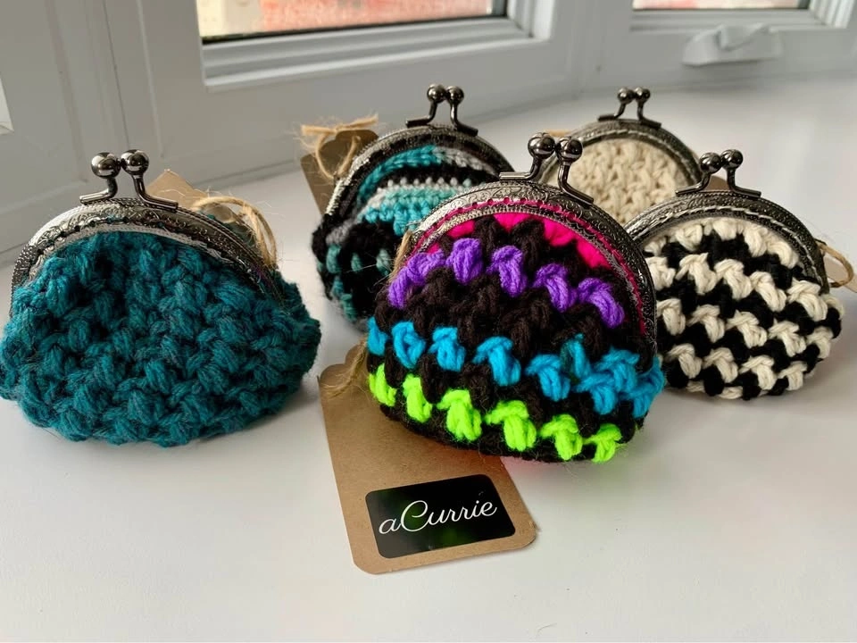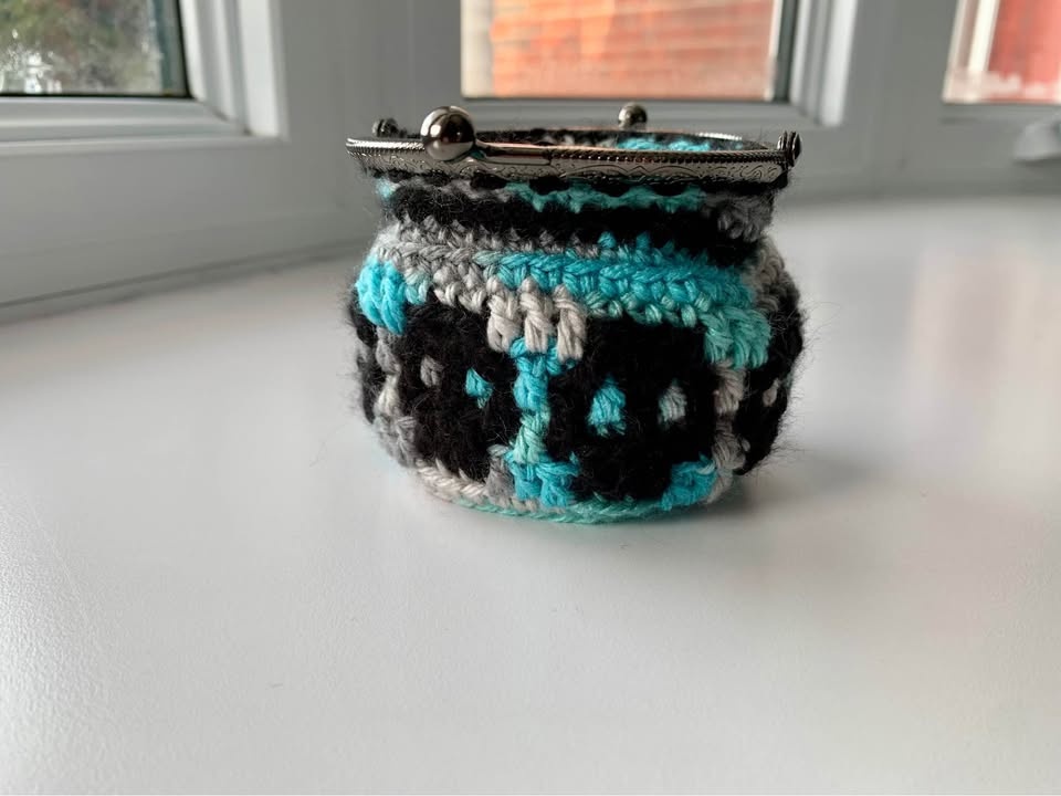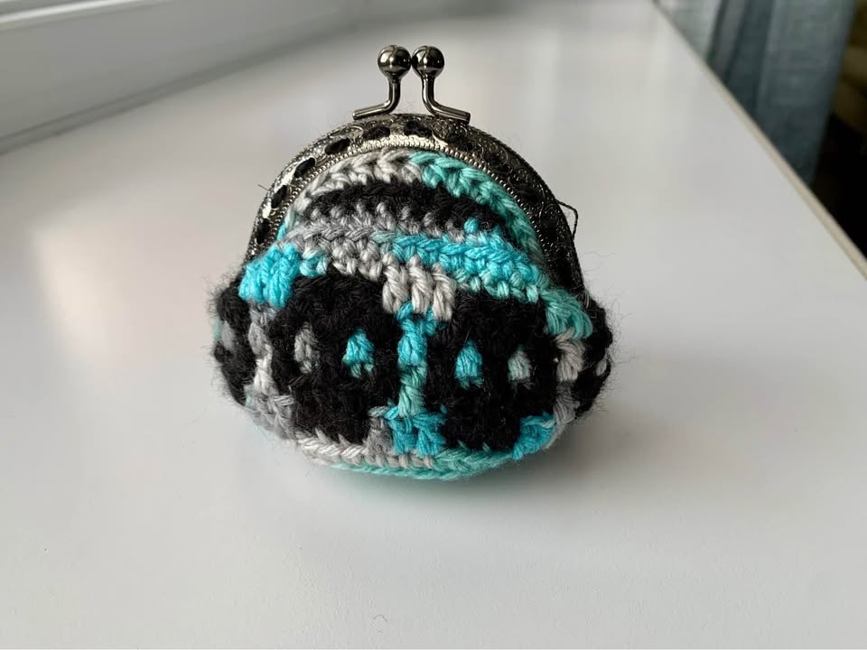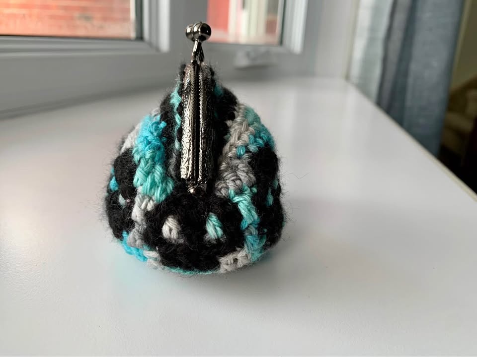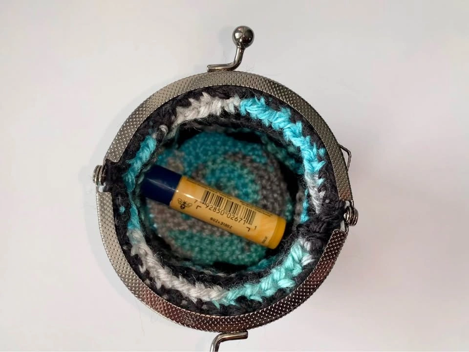 Kiss clasp coin purse, fits so much more than coins (lip balm for scale). Metal clasp with washable material, durable enough to hold makeup, snacks, keys, etc.