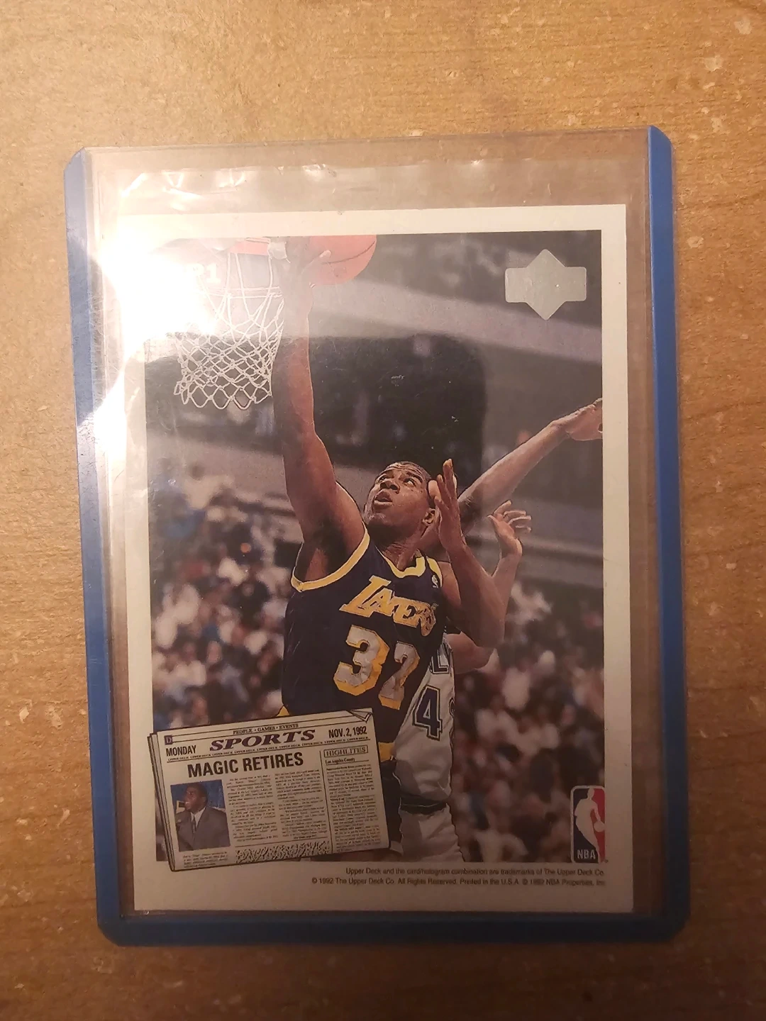 Collection of two Upper Deck NBA trading cards featuring Magic Johnson and Larry Bird. Cards are from 1992, commemorating their retirements. These are sports collectibles for NBA fans.