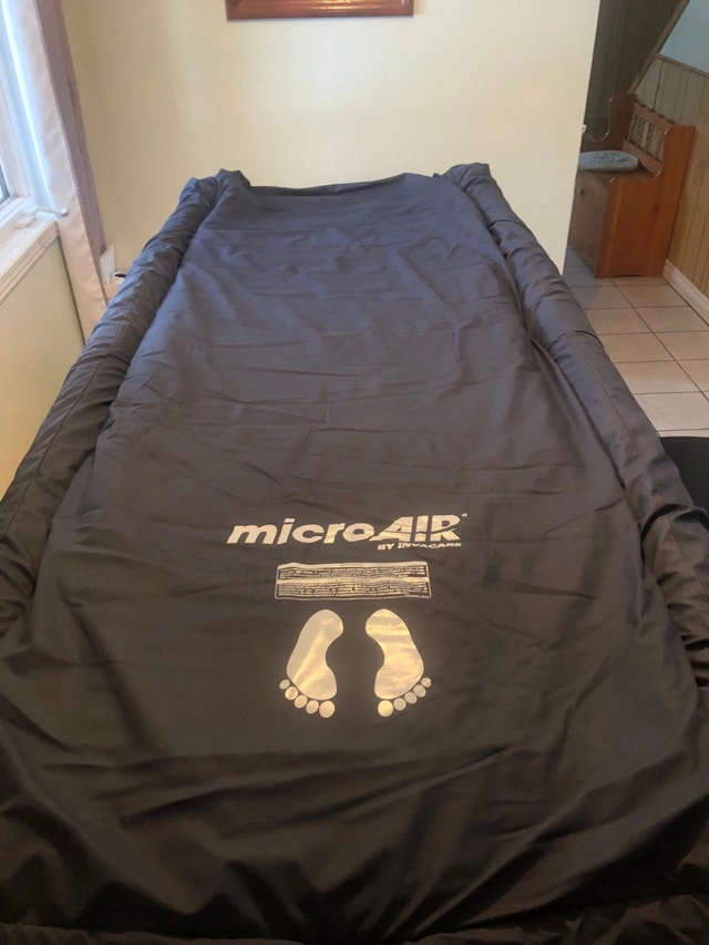 Invacare MA900 alternating low-air-loss mattress for the treatment and prevention of pressure ulcers (bedsores). This mattress has a unique rotation feature that helps move the patient to prevent bed sores. Very good condition. Retails for $10k (see last pic). Add on a Drive Homecare hospital bed for $300 and get free delivery. Mattress only: $800. Mattress and bed: $1100. Features True Low Air Loss Therapy for moisture and temperature control, with inflatable built-in side bolsters. Auto Firm Mode for quick inflation during transfers. Customizable cycle times. Dimensions: 36” by 80” (twin XL). Cash accepted.