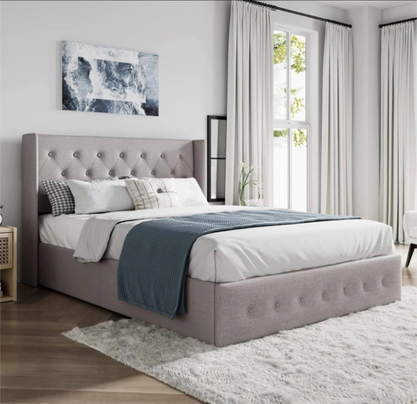 Grey Upholstered Button Tufted Bed Frame