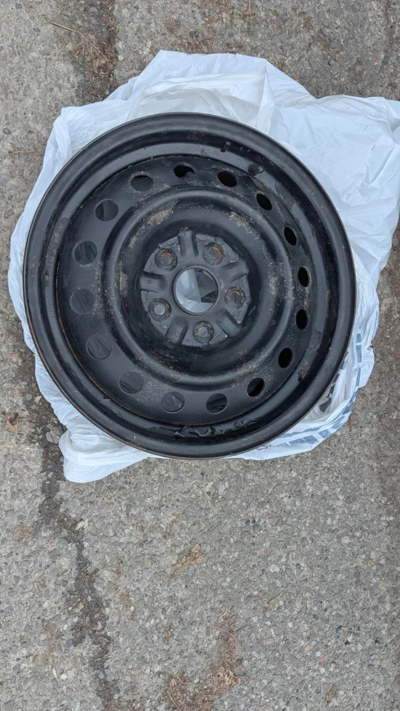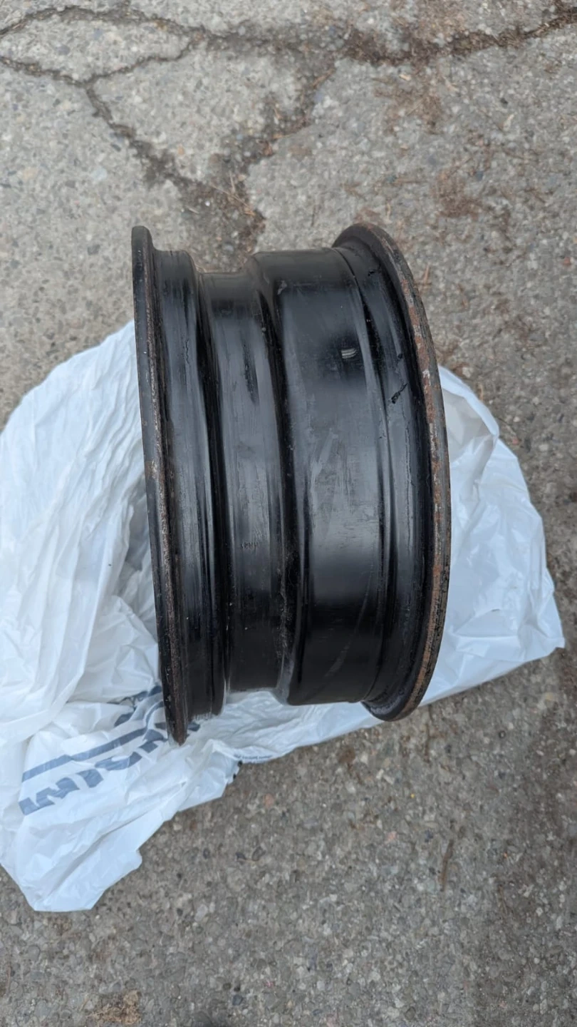 Four used steel wheel rim, black in colour. It's a standard size wheel, likely for a car or light truck. Shows some signs of use and rust but is structurally sound. Tire size 205/60R16. Price is $30 each