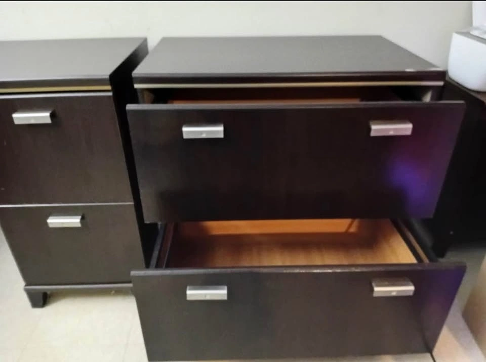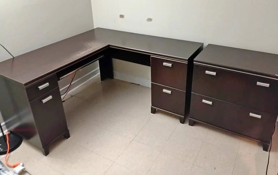 Dark Brown Corner Desk with Filing Cabinet