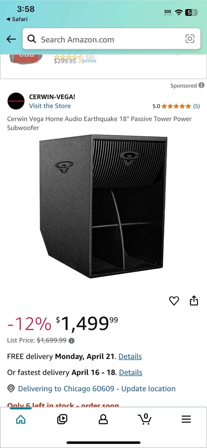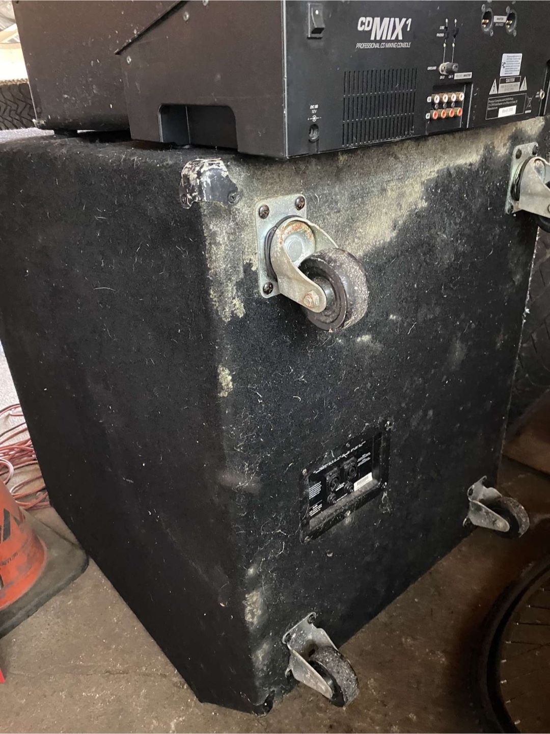 Powerful Cerwin Vega subwoofer. Large 18 inch passive driver. Shows some wear. Four castors for easy mobility. I have 2 of those throw offers