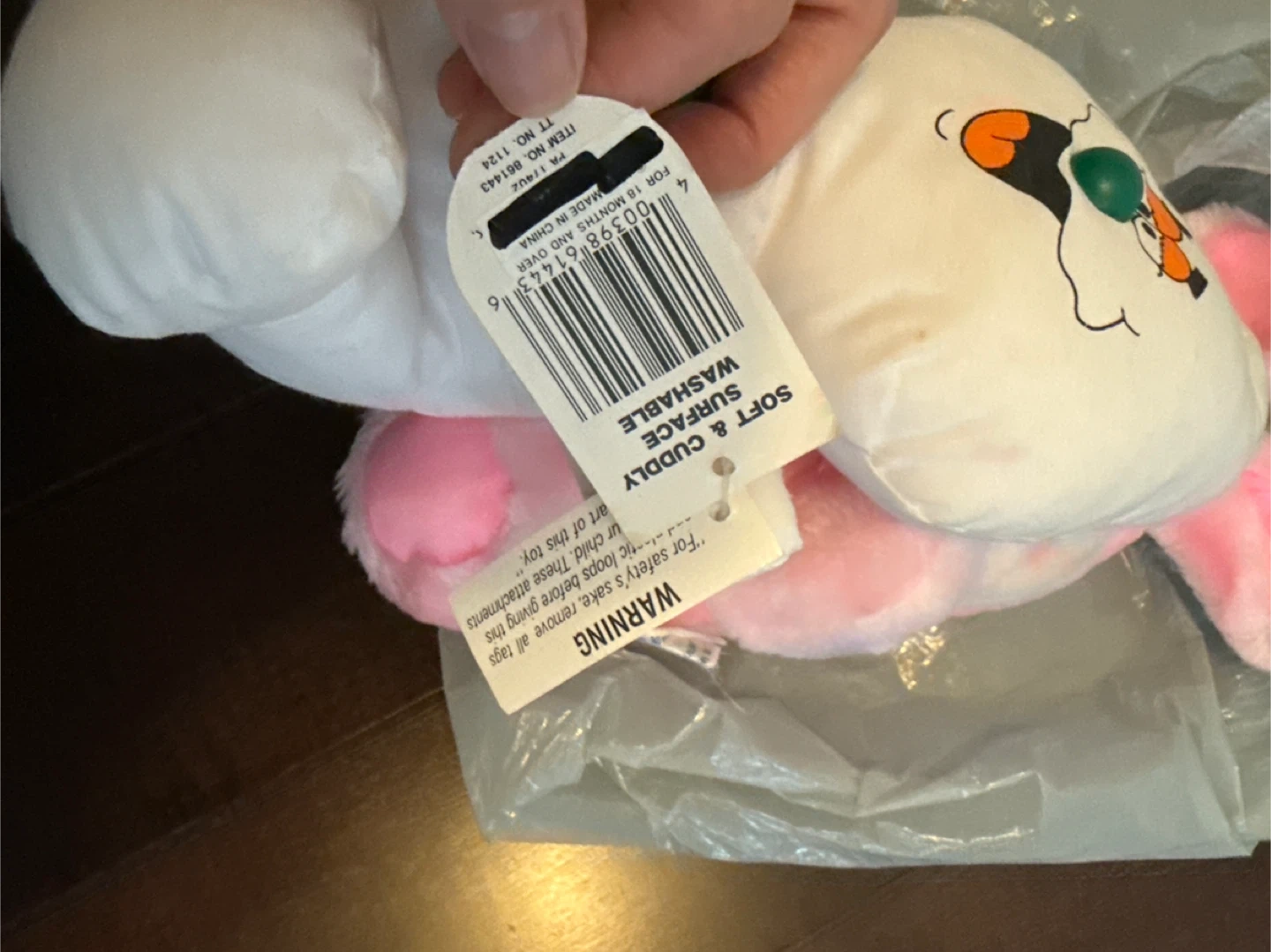 This soft and cuddly plush toy features a friendly ghost design. It's surface washable for easy cleaning. This toy is suitable for children 18 months and over. New one with tag