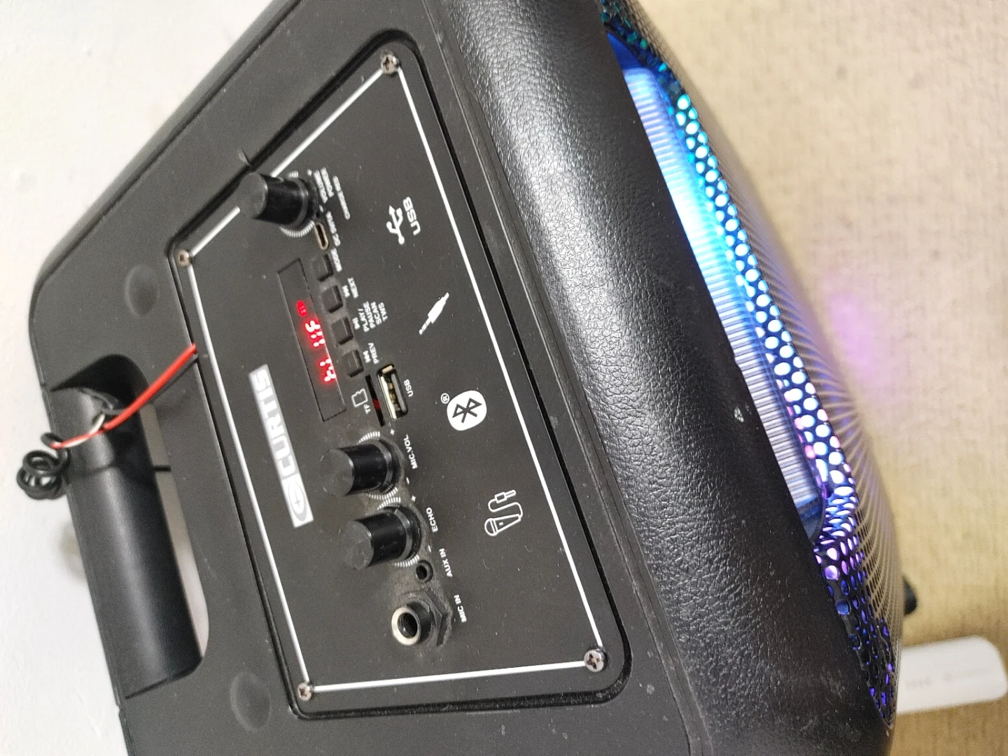 Get ready to pump up the volume with this Curtis speaker! It's in used condition, but still ready to bring the party. This speaker boasts great sound and vibrant LED lights that will turn any space into a dance floor.