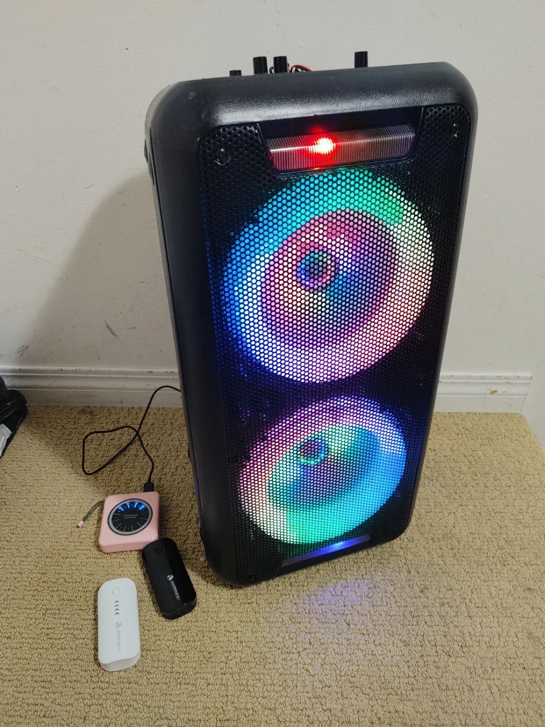The speaker power connector broke but it's been modified to take power Banks to Power It Up still works that's why I'm selling it for $25 including the two power Banks