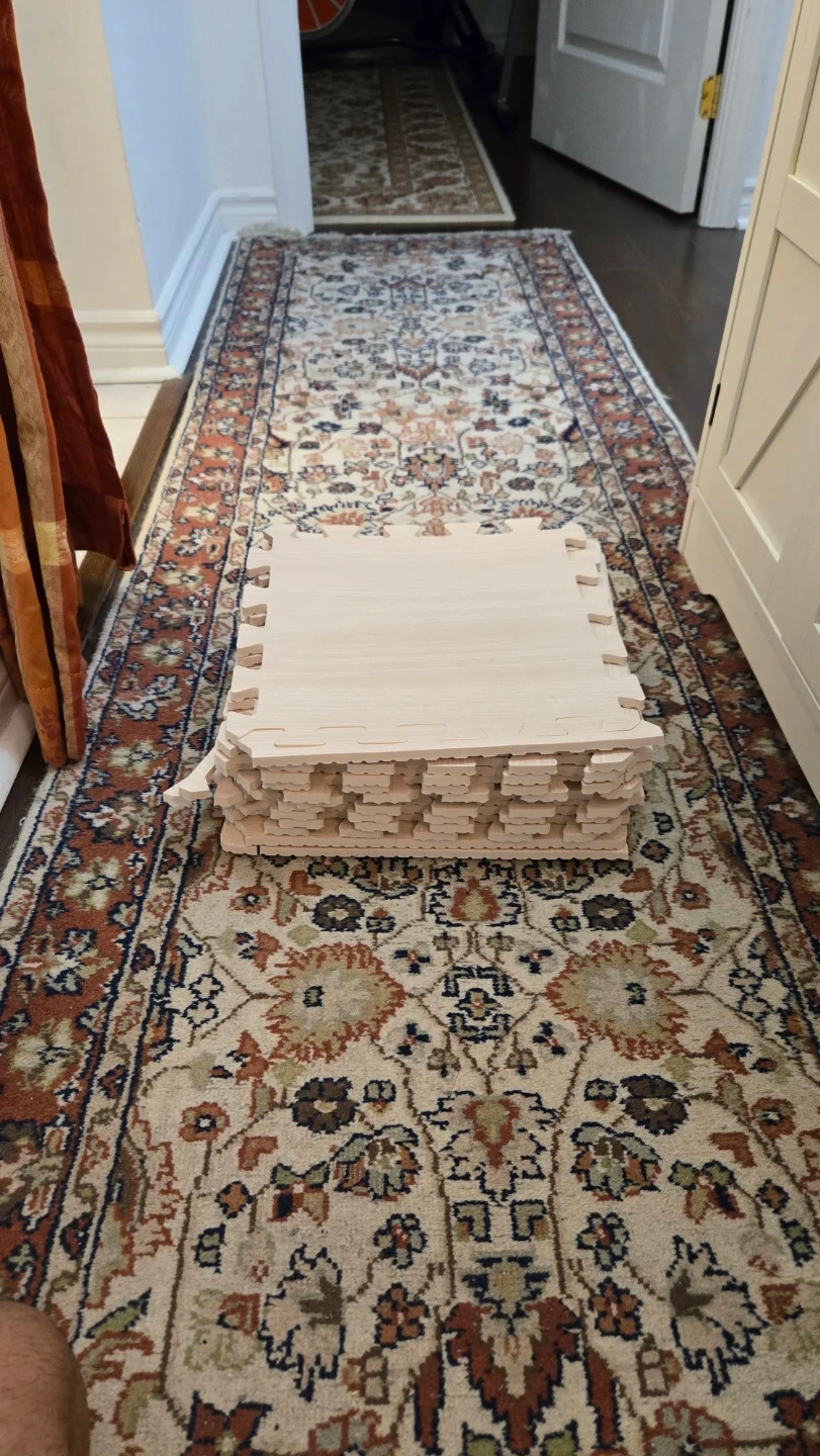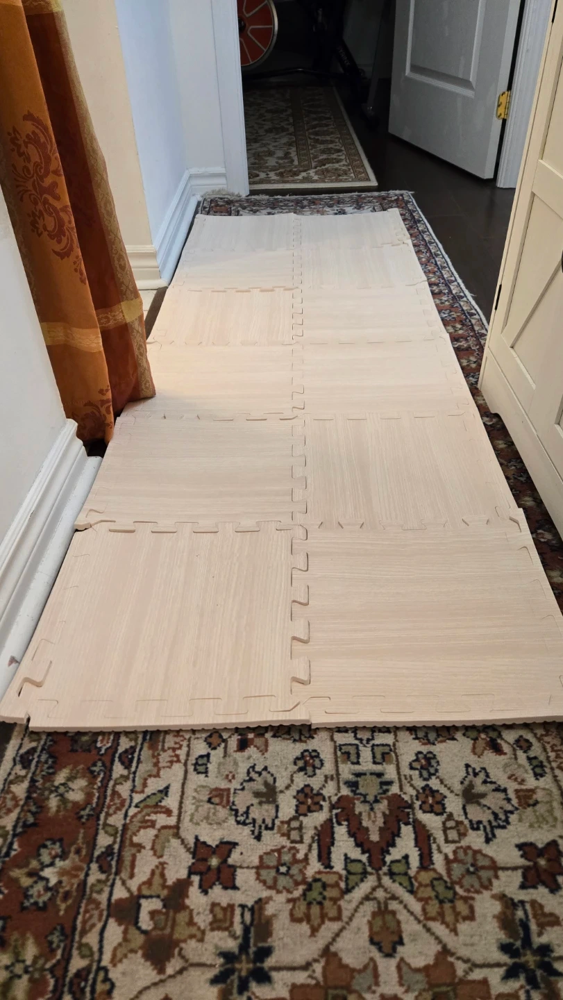 Selling a set of foam play mat tiles! They're perfect for creating a soft and safe play area for kids. These interlocking tiles are easy to assemble and provide cushioning on hard floors. Each tile is 1 ft by 1 ft