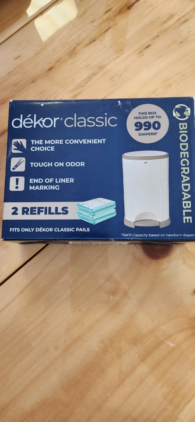 Get 2 refills for your Dékor Classic pails! They're tough on odor and feature an end-of-liner marking. This box holds up to 990 diapers. Fits only Dékor Classic pails.