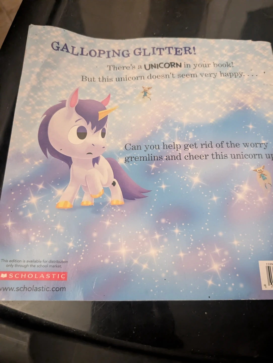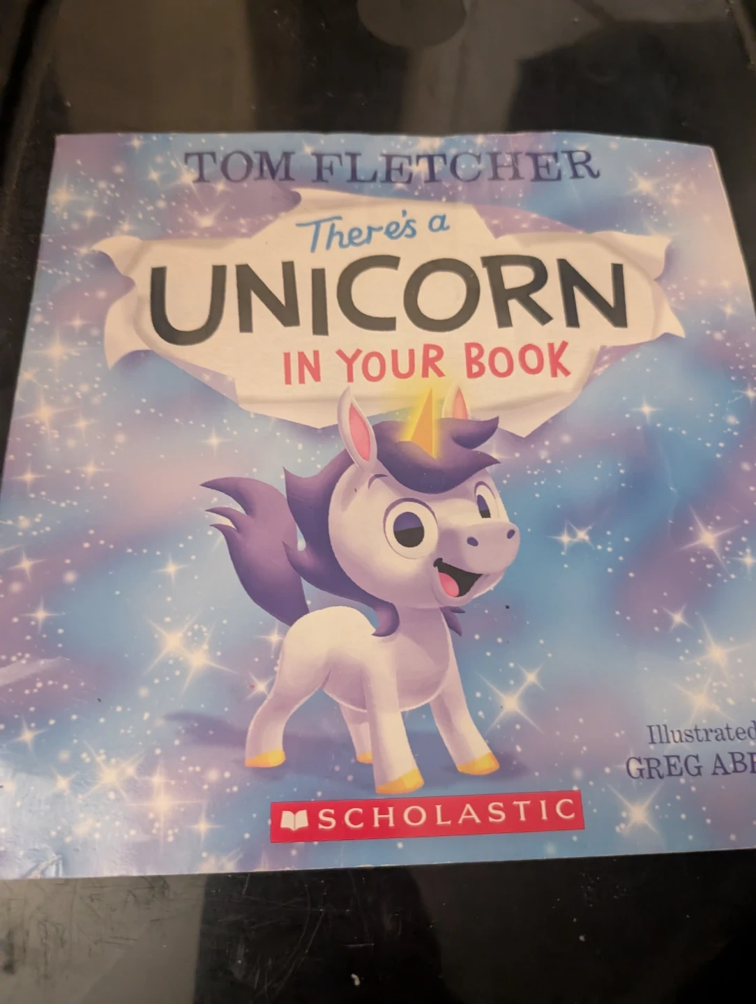 There's a Unicorn in Your Book by Tom Fletcher. This interactive children's book invites kids to help a unicorn who isn't very happy. It's a fun story for young readers. The book is from Scholastic and illustrated by Greg Abbott.