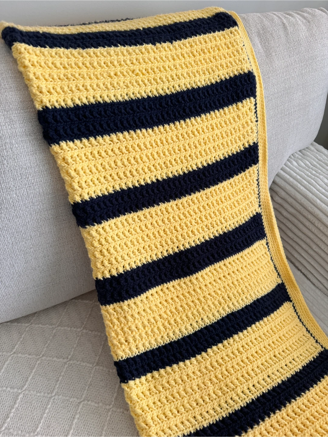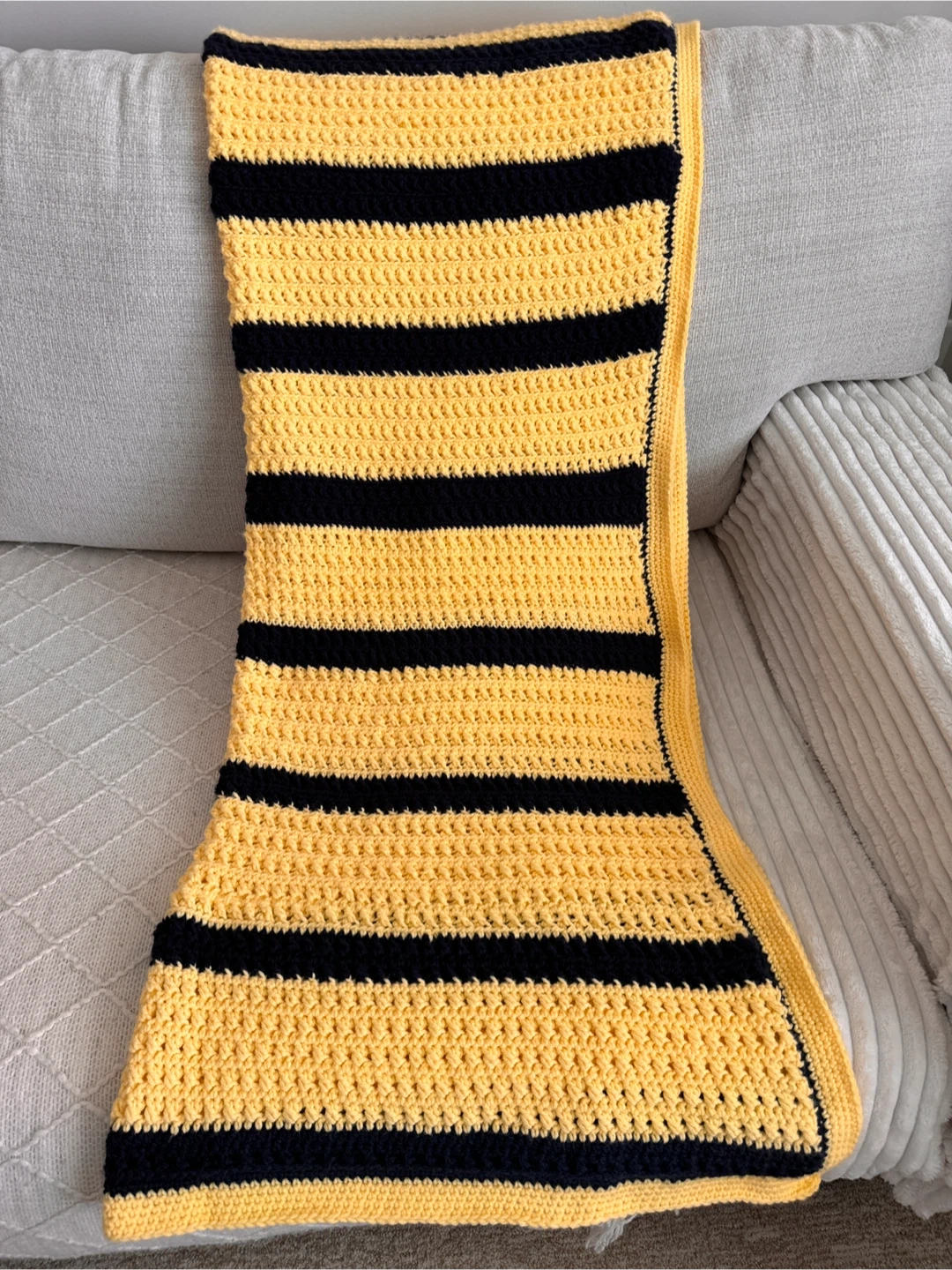 Handmade Crochet Blanket – Yellow & Black Striped
