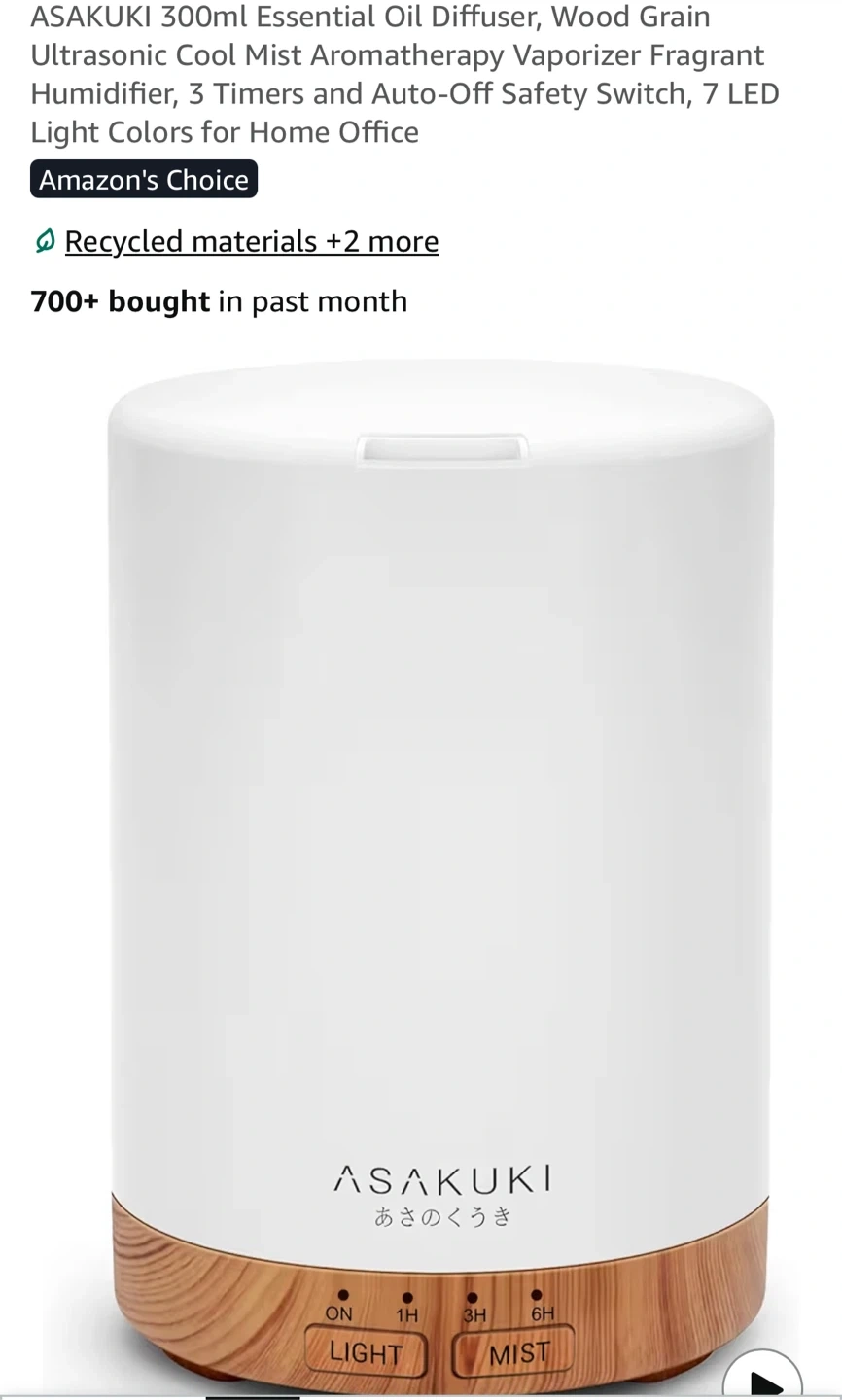 ASAKUKI 300ml essential oil diffuser.
