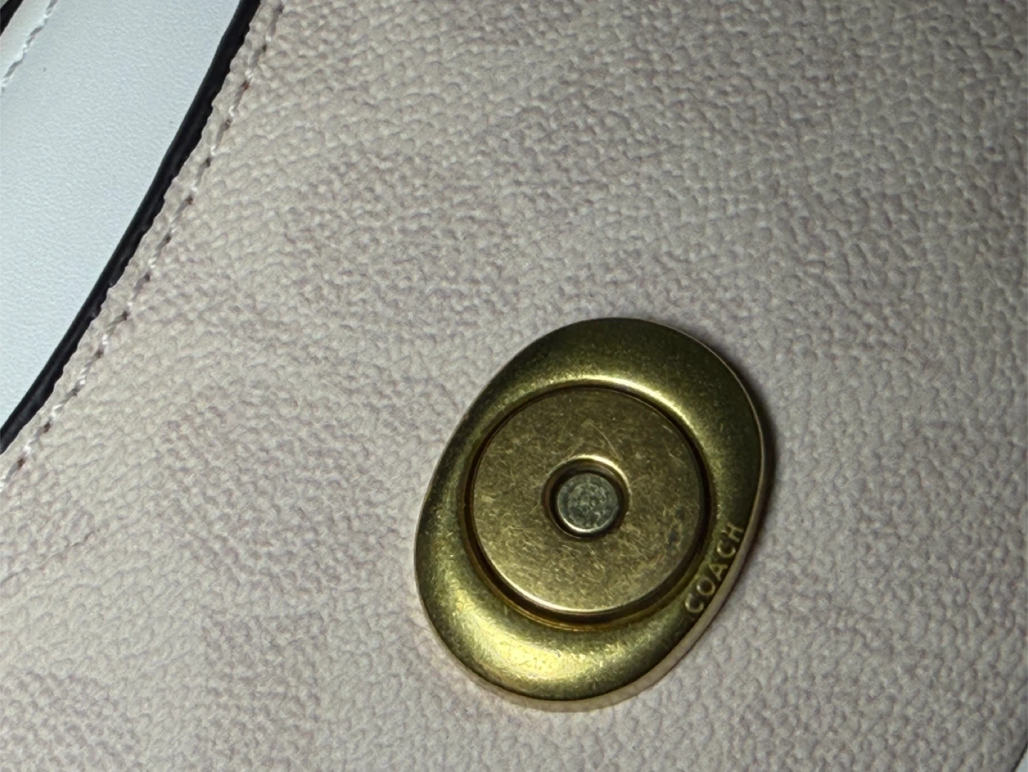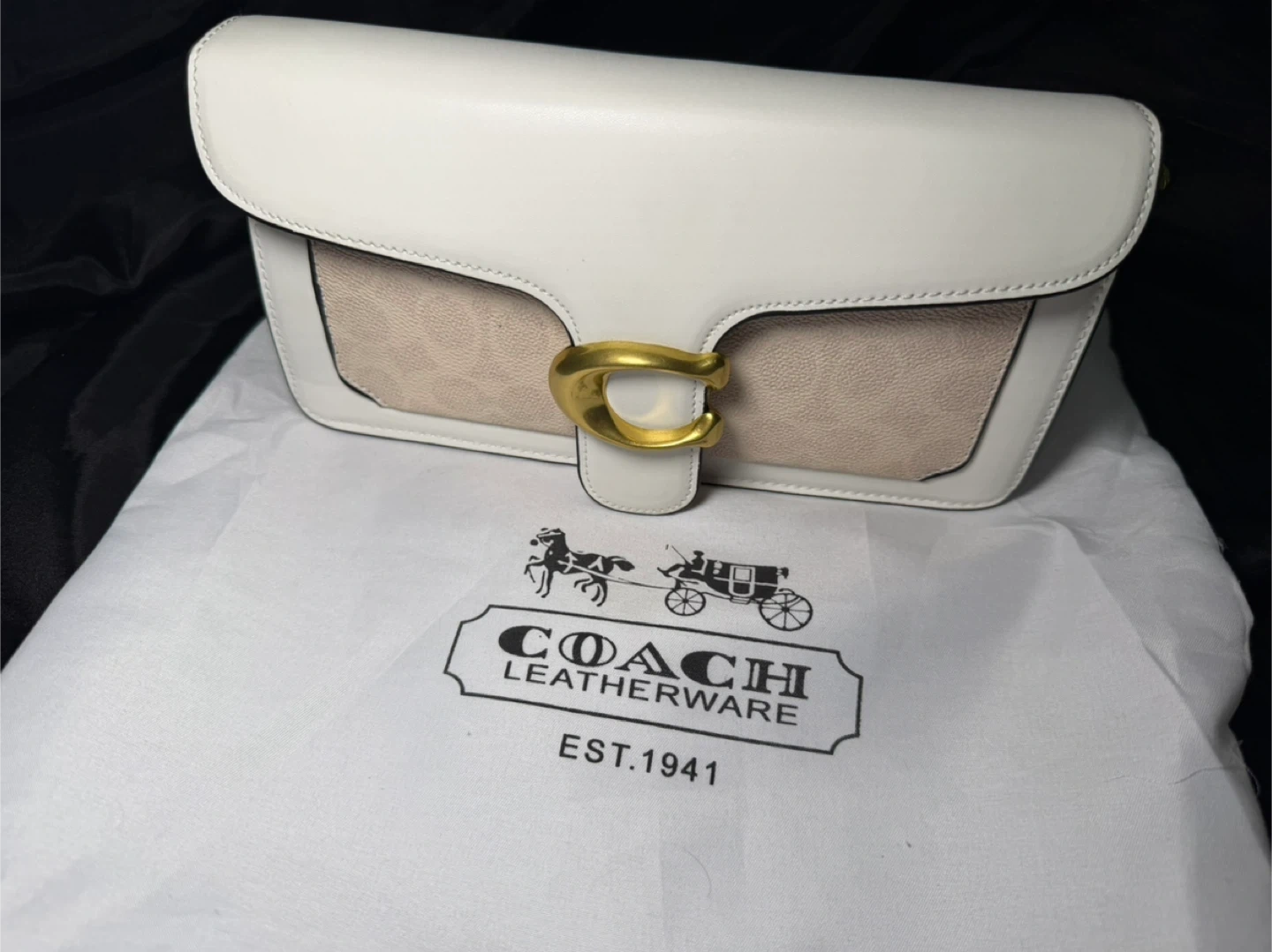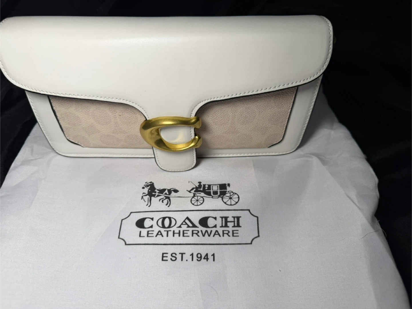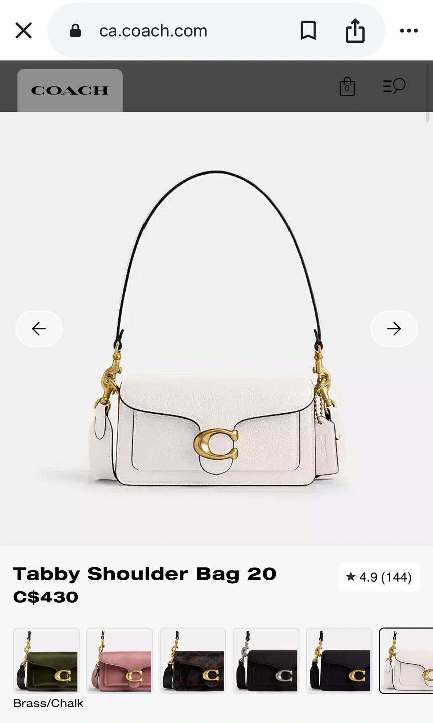 Coach Tabby Shoulder Bag in white. It's made of textured leather and features a signature C hardware. Comes with a dust bag.