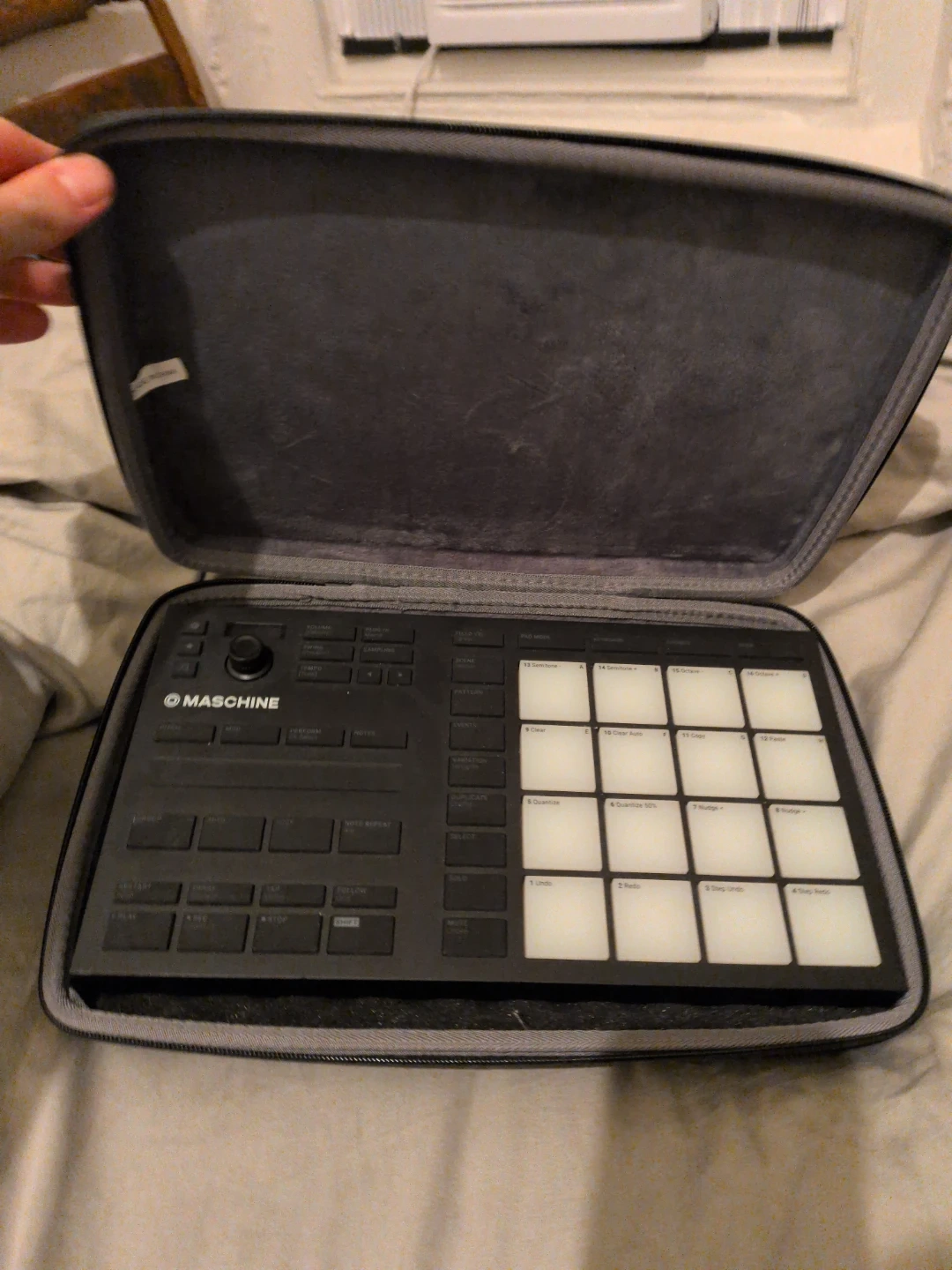 This is a Native Instruments Maschine Mikro MK3. It's a compact MIDI controller with 16 illuminated pads. Includes a protective carrying case. Bring your laptop and I'll transfer the license key over to you and make sure you walk off happy. I barely ever used it. It's practically brand new. I don't use it lol